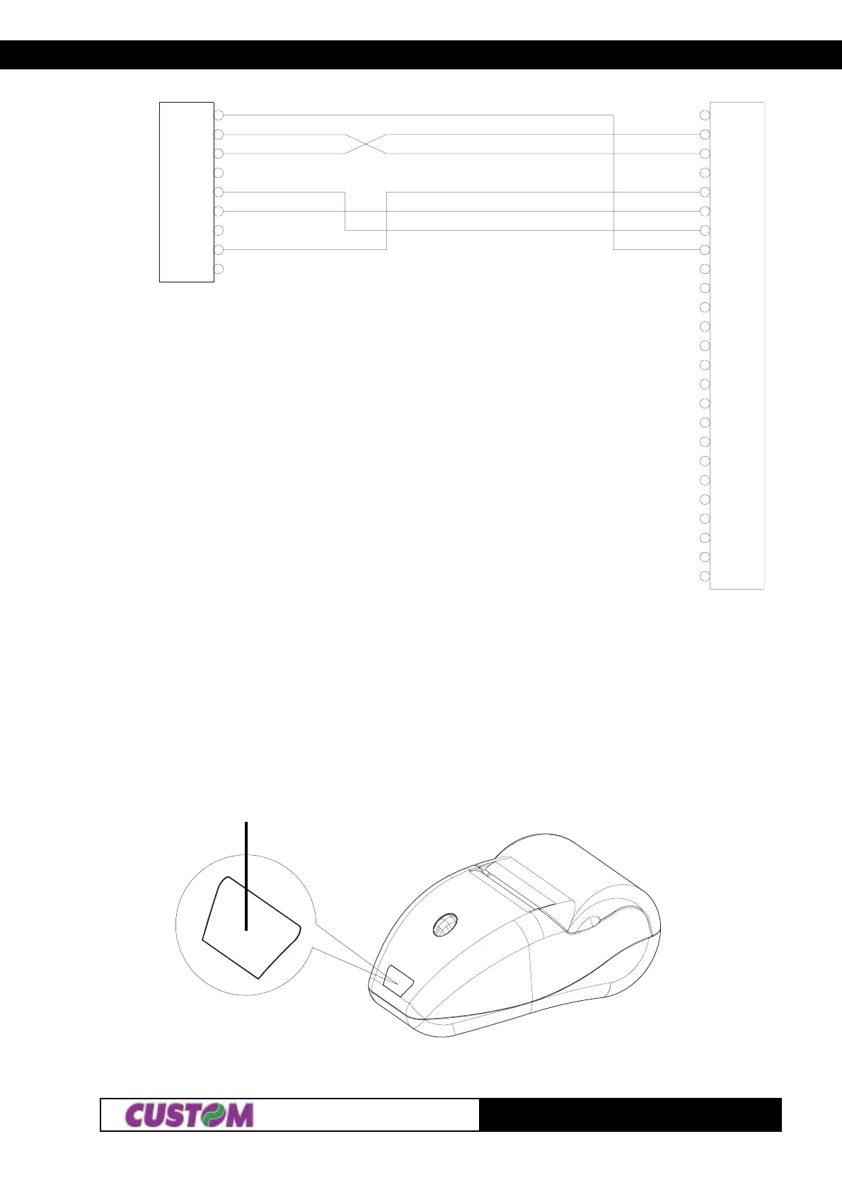 The printer has a serial interface for bidirectional data exchange. The infrared port is centered on the power