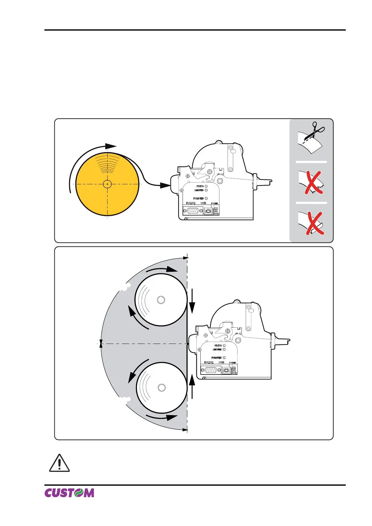 Position the paper roll so that it unrolls in the direction shown in fi g.1.4.1.