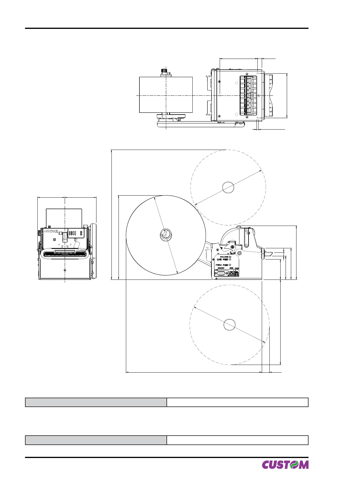 Printer dimensions with roll holder support