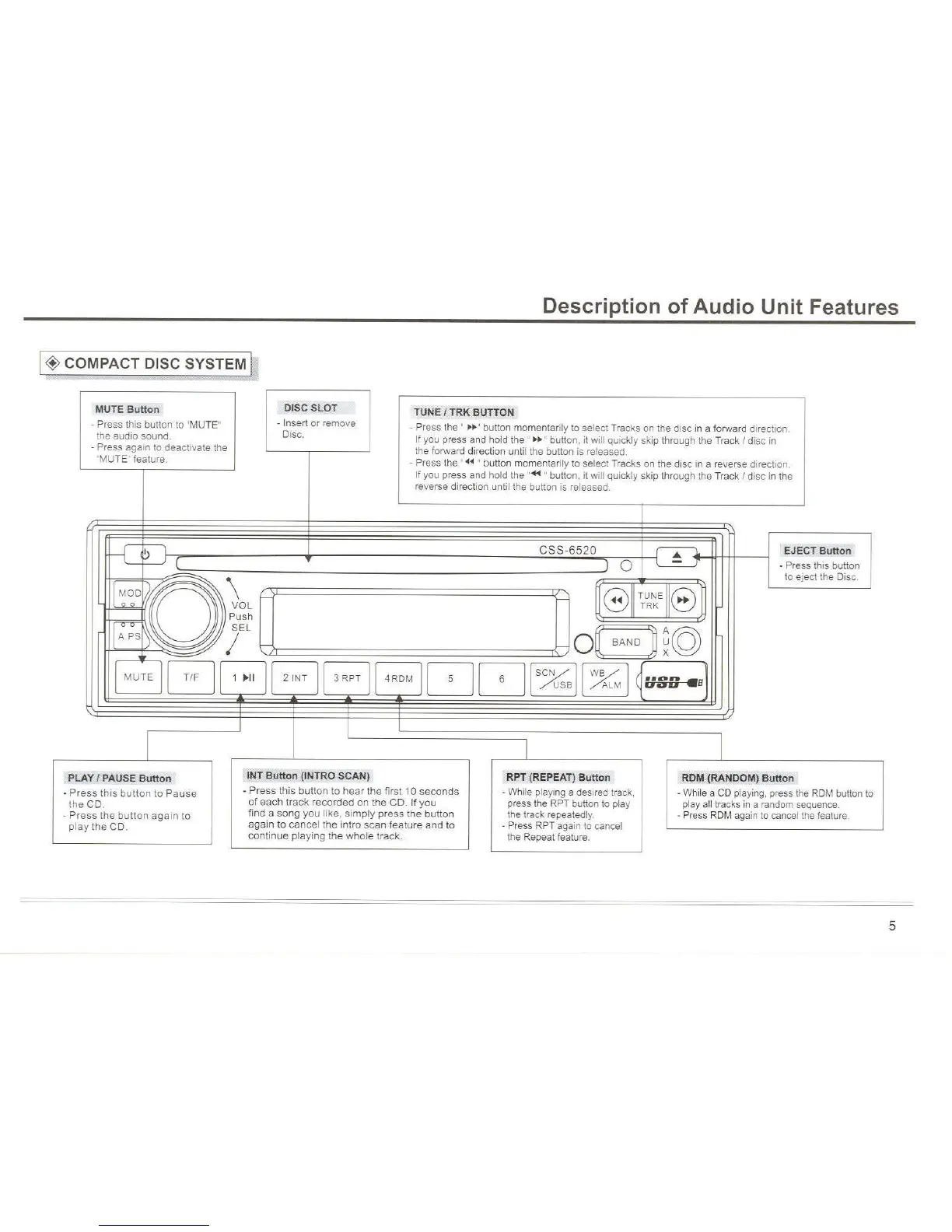 Custom Radio CSS-5900E - Audio Unit Feature Descriptions - Part 3 (CD System); Tune;Track Buttons (CD System)