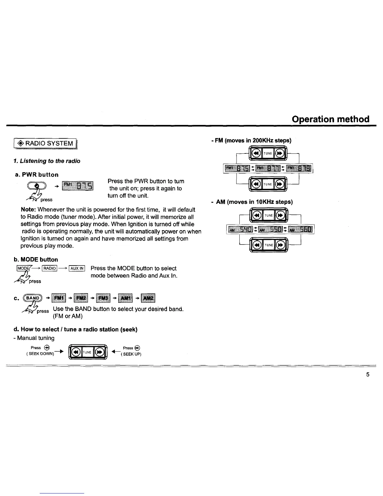 Custom Radio CSS-6000 - Operation Method: Radio Listening; Basic Radio Operation Steps; Tuning and Selecting Radio Stations