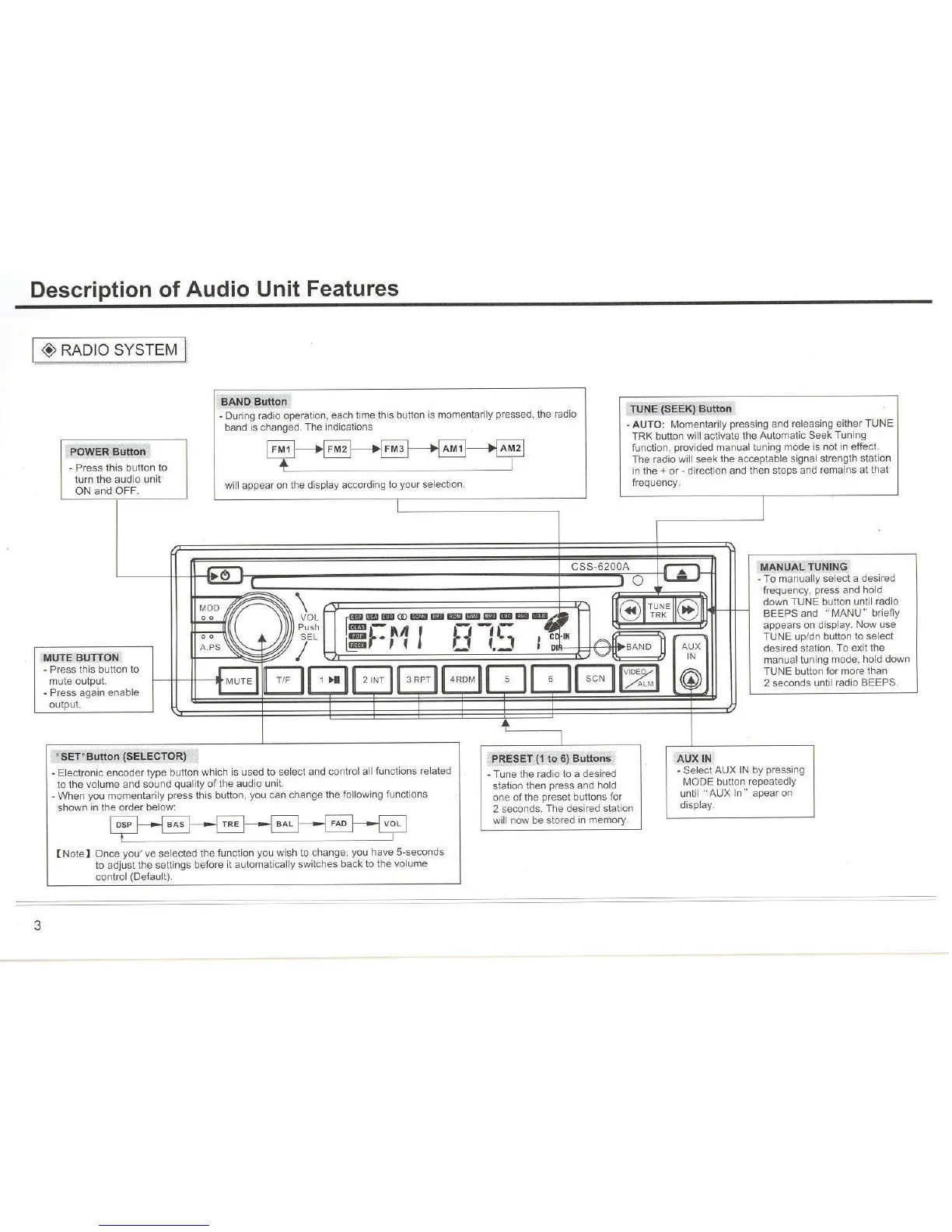 Custom Radio CSS-6200A - Description of Audio Unit Features; Radio System