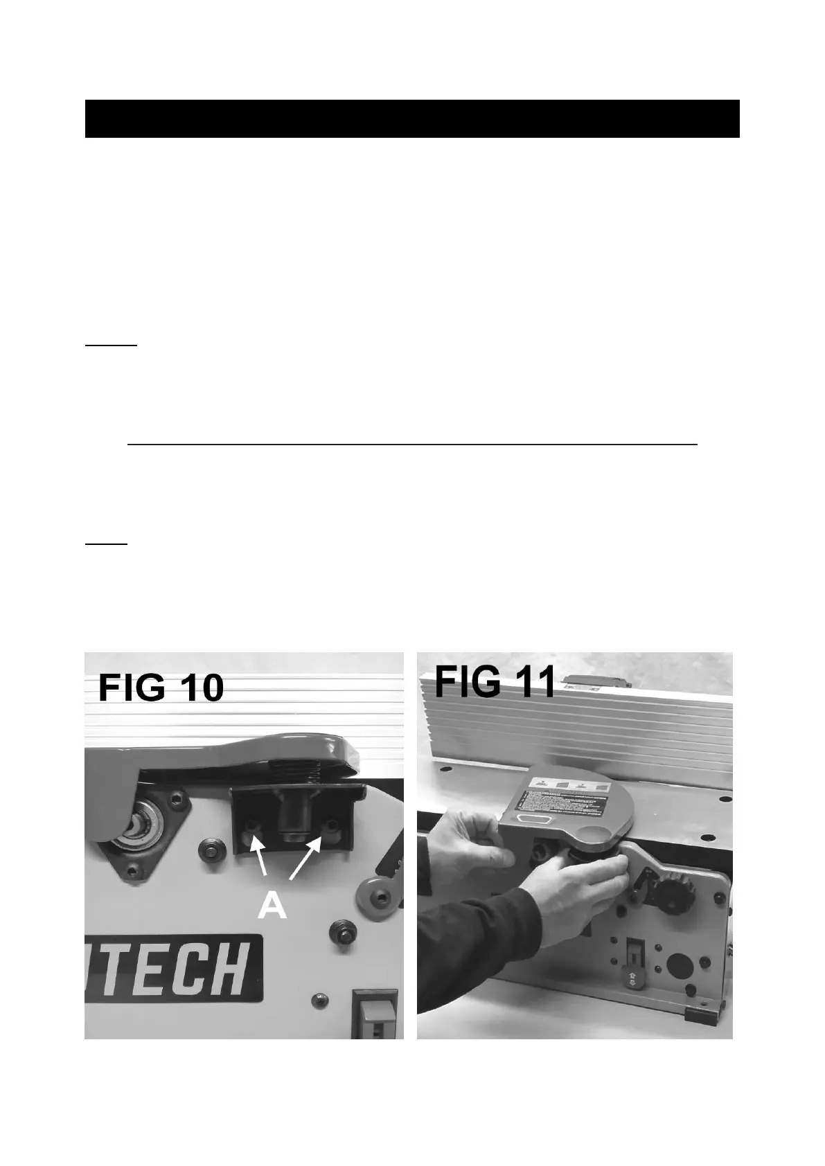 1. Locate the 2 screws holding the cutterhead guard bracket and loosen the screws “A” in FIG 10.