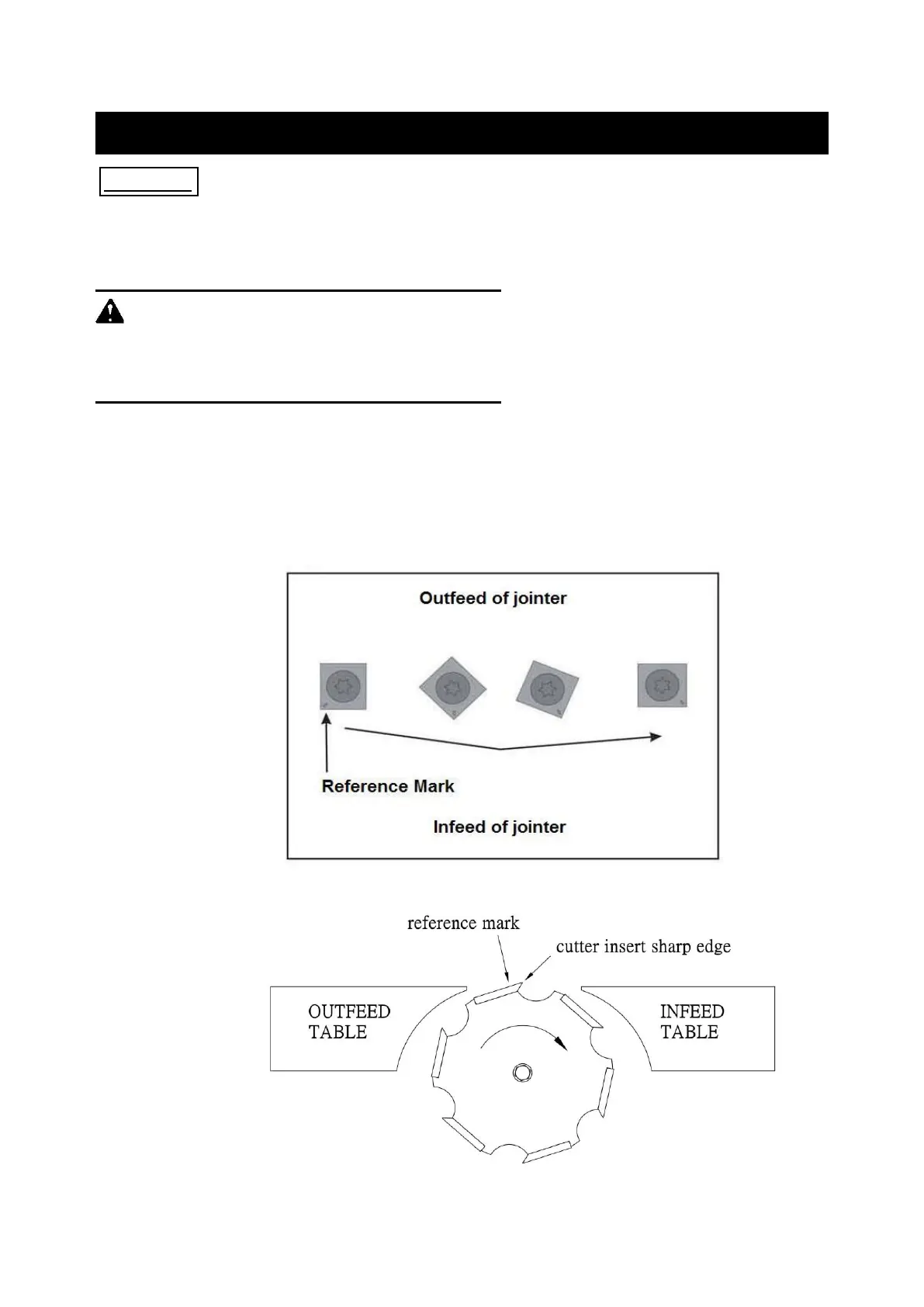 WARNING: To prevent serious personal injury NEVER rotate the cutterhead by hand.