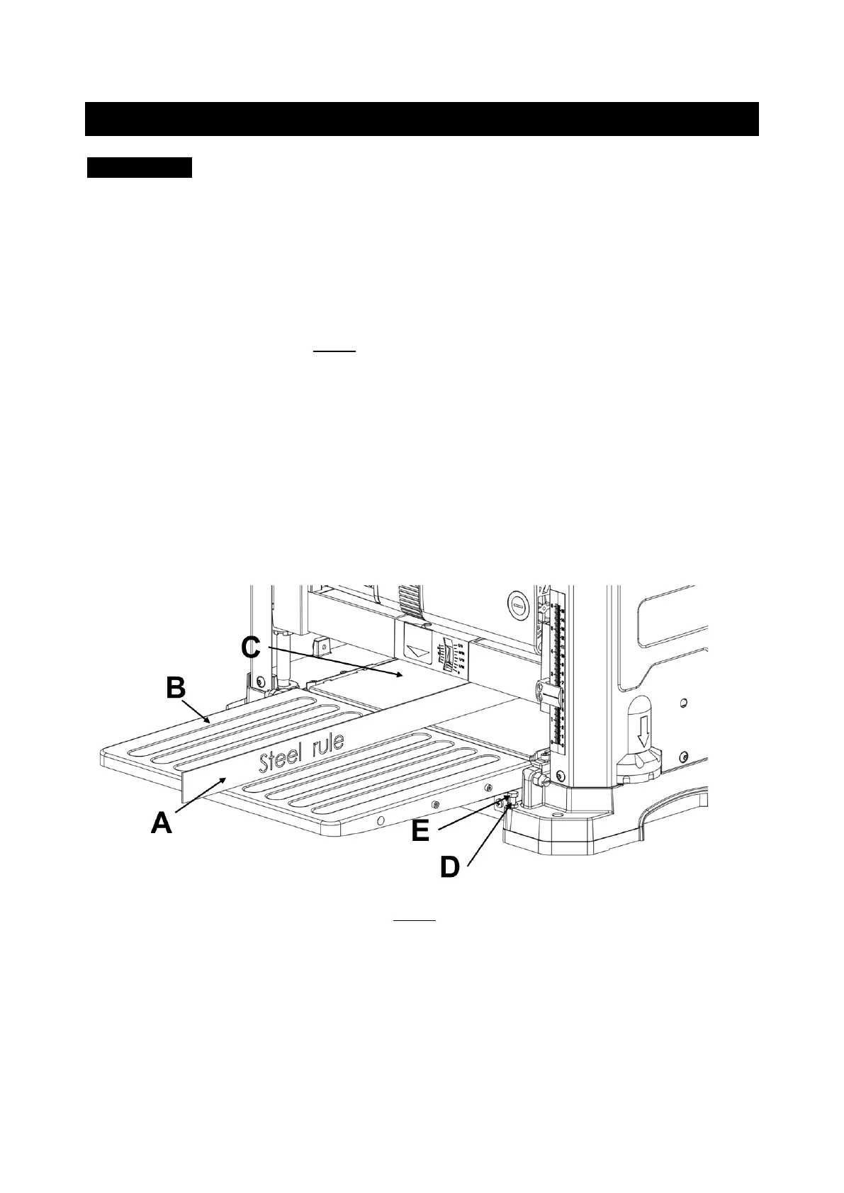 Screws (E) on each side of the table until the infeed table is level with the planer