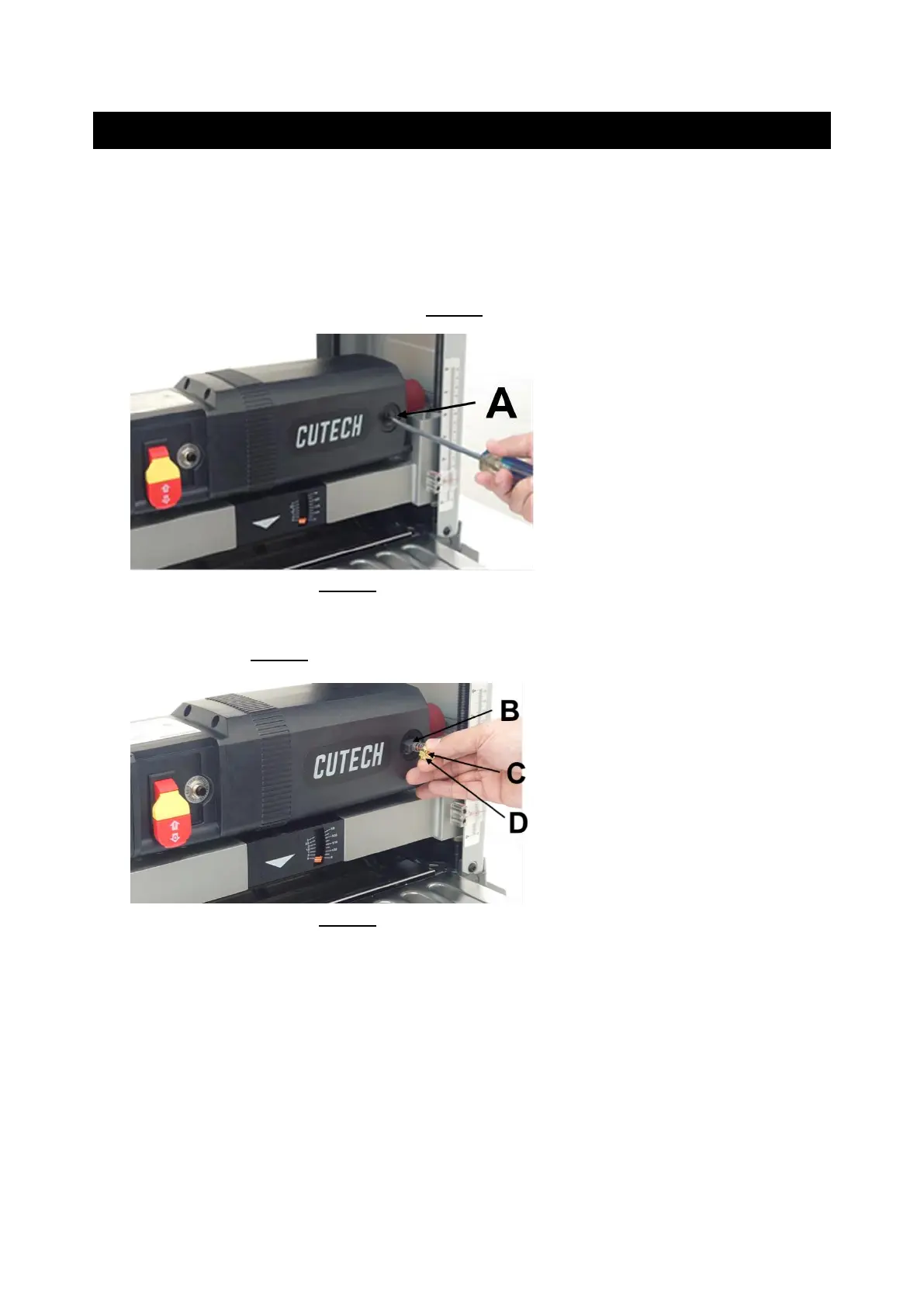 2. Once the brush has been removed, inspect the carbon (B), the spring (C), and the