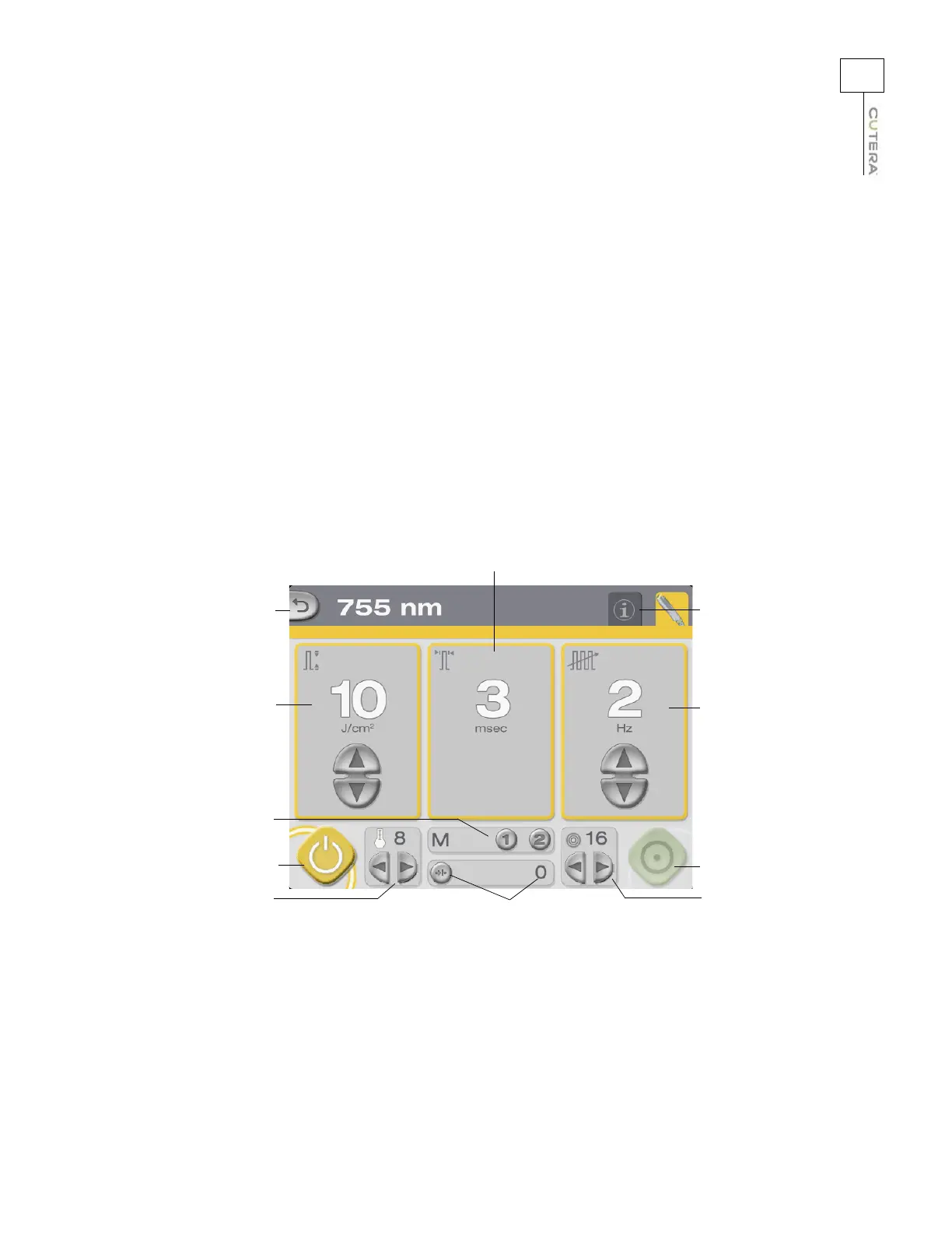 The Treatment screen is accessed by touching the button for the desired wavelength on the Select