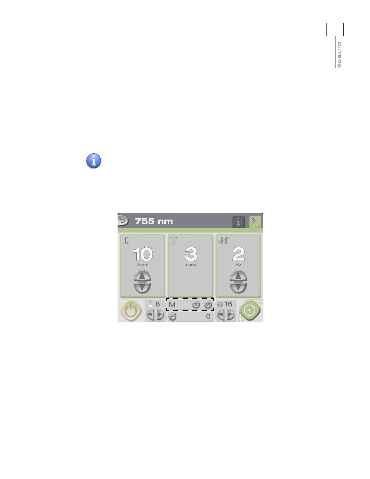 repetition rate settings currently displayed on the Treatment screen. Touch and hold memory button 1 or