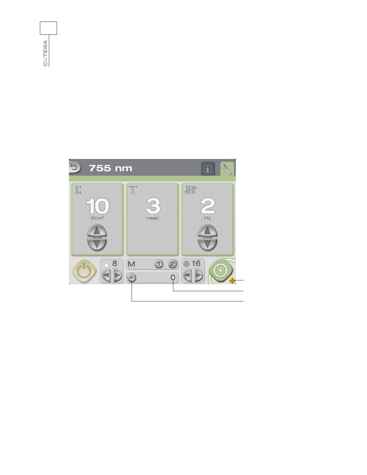 Location of Displays and Indicators on 755 nm Treatment Screen