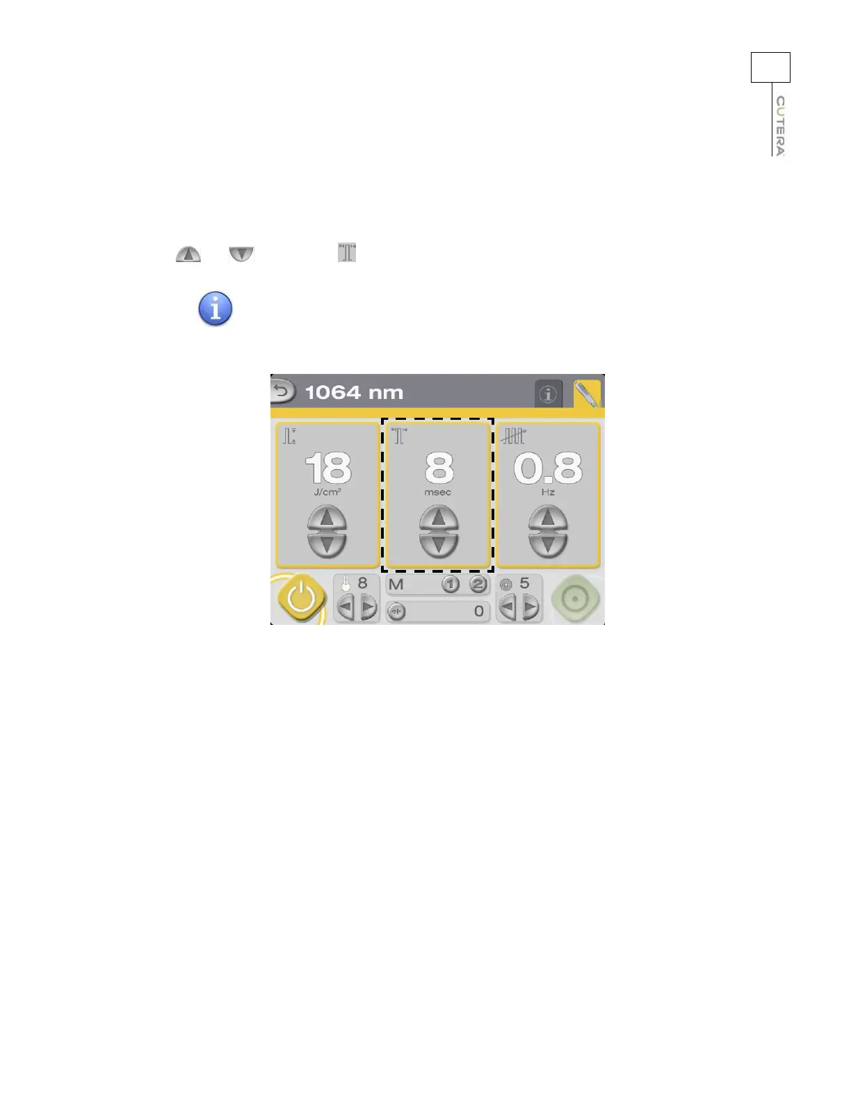 Location of Pulse Width Controls and Display on 1064 nm Treatment Screen