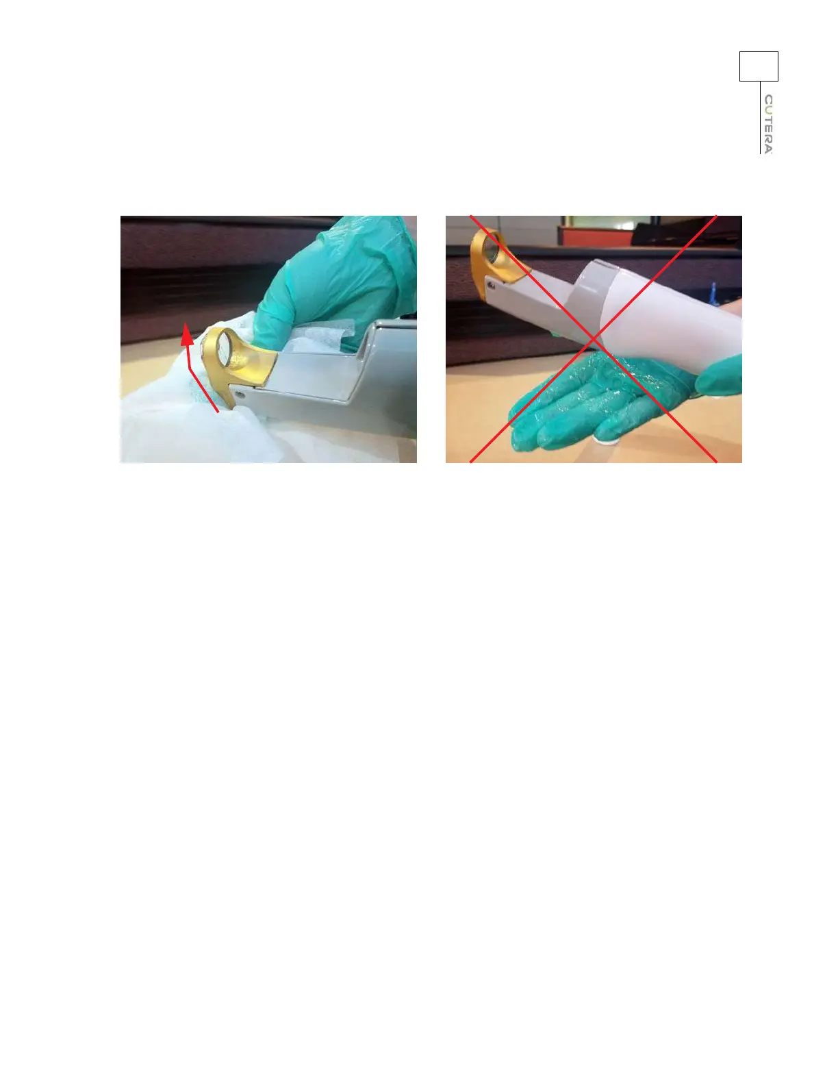 Do not handle the handpiece with gel-covered gloves