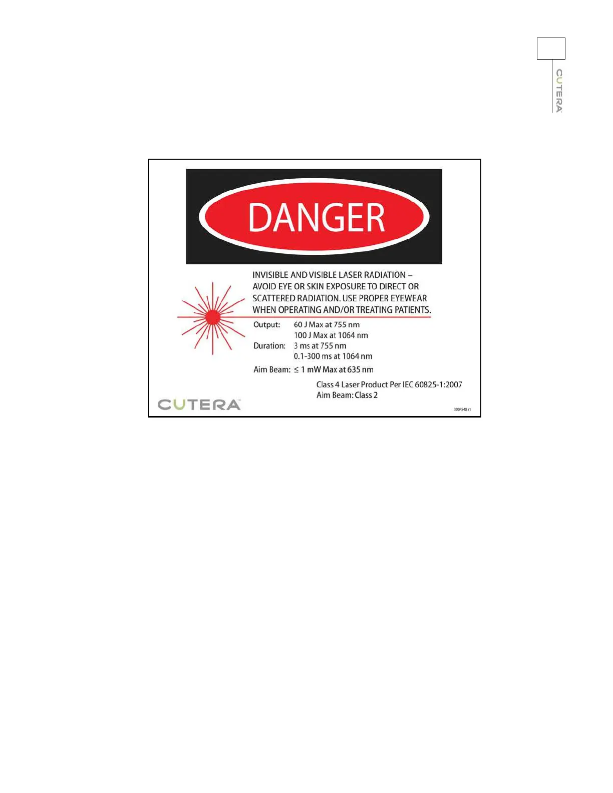 Cutera Excel HR - Appendices; Laser Warning Sign and Symbols