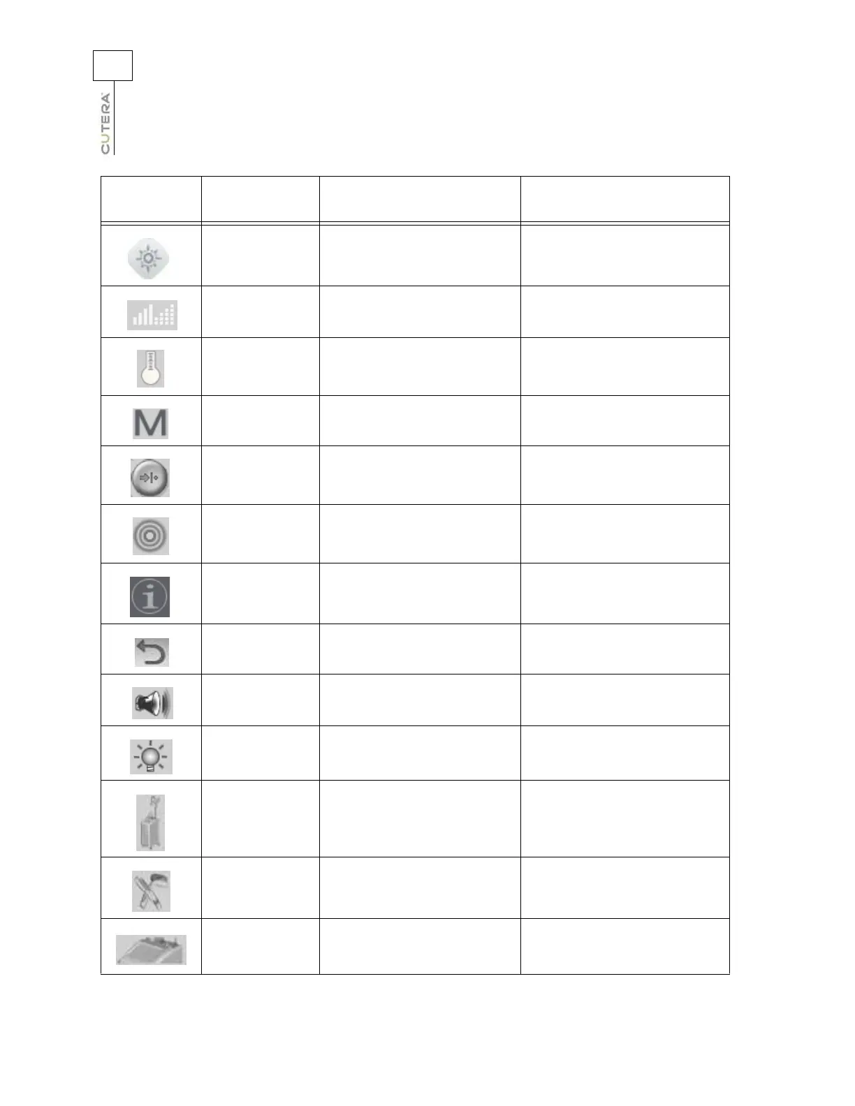 Cutera-defined System display software version Touchscreen display