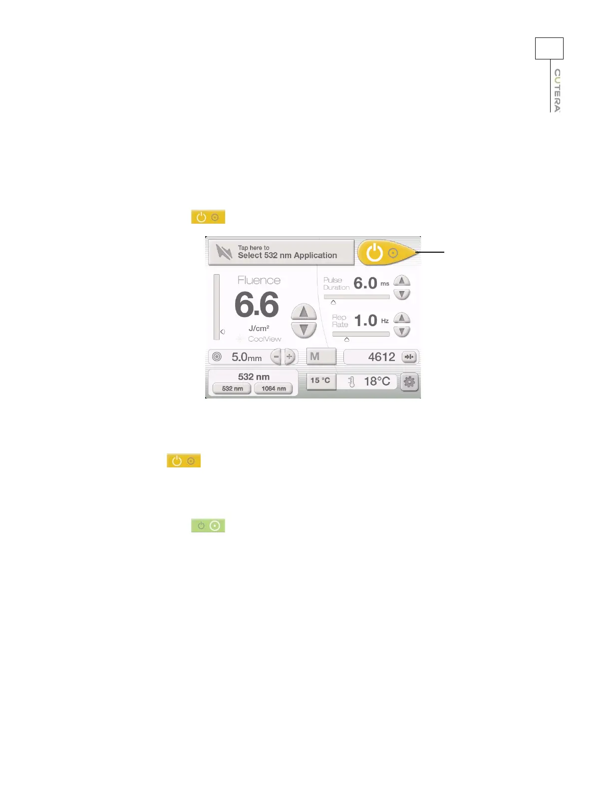 Press the (laser status) button to toggle to READY mode. In READY mode: