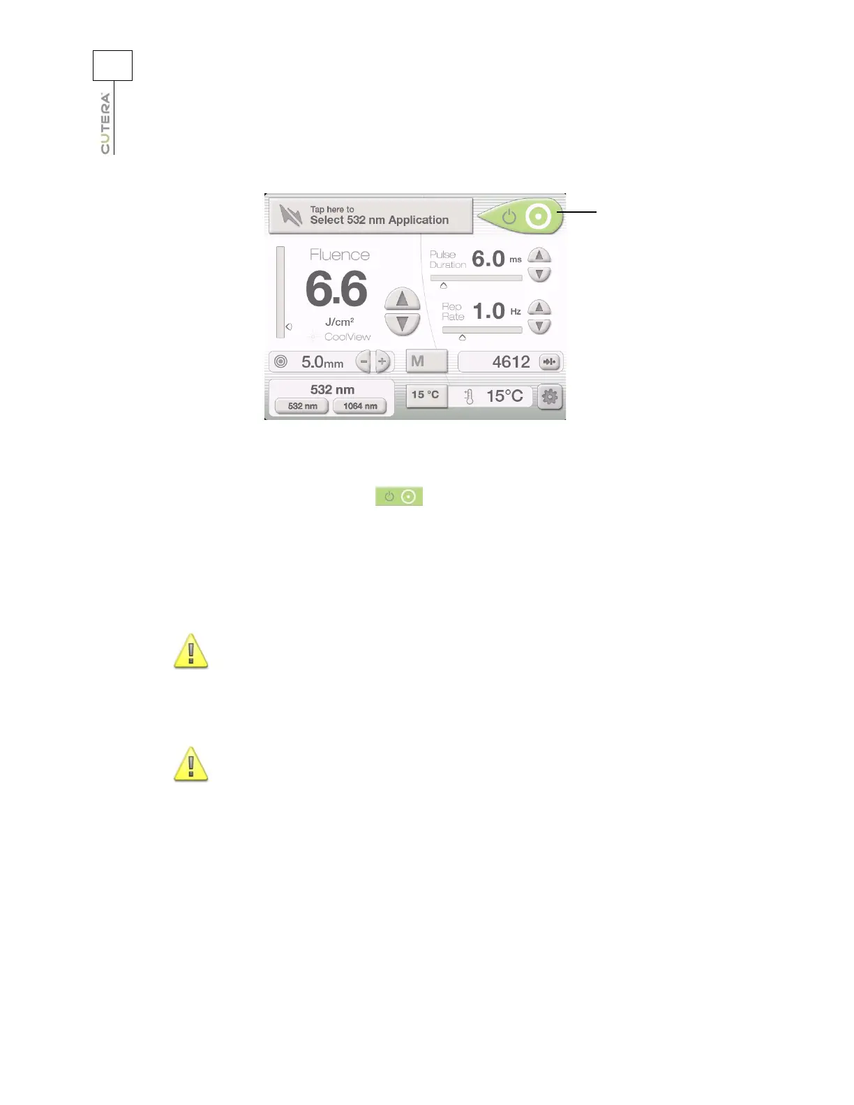 from the handpiece, the system emits an audible tone and a yellow indicator illuminates on the Treatment