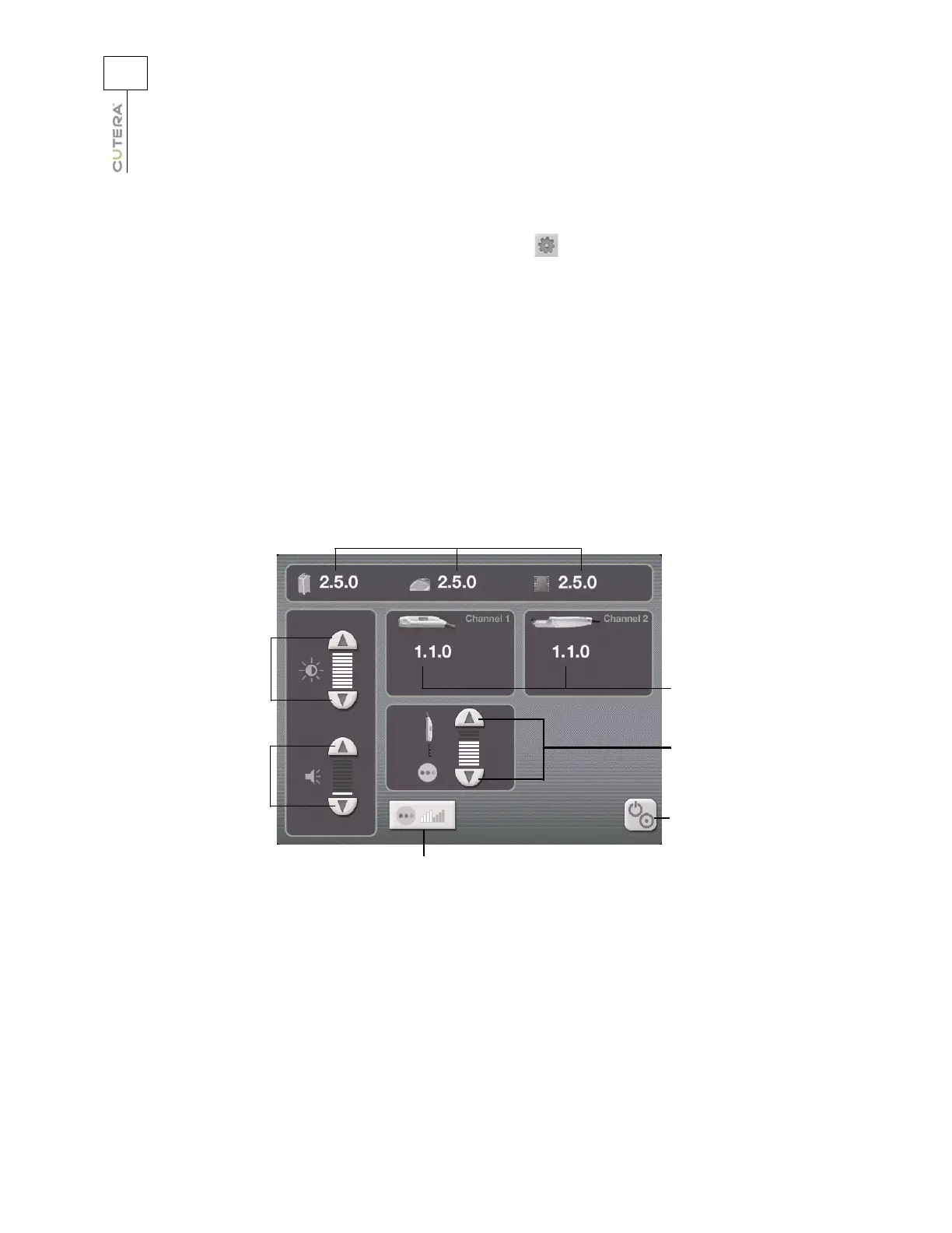 • adjust the working beam intensity (Genesis V handpiece only; refer to the Displays and