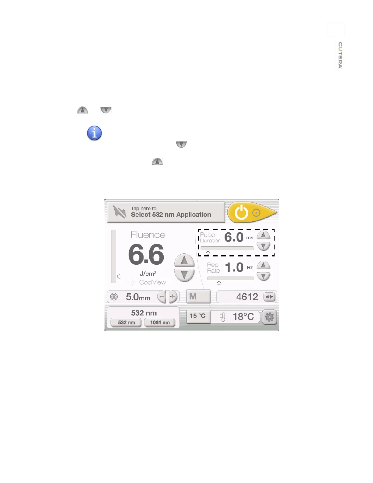 energy is delivered, measured in milliseconds (ms). Select the desired pulse duration by pressing the