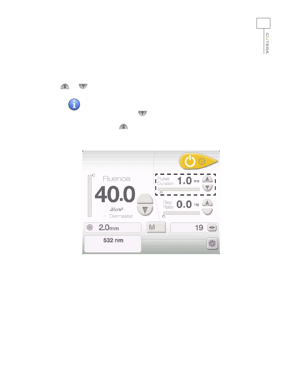 energy is delivered, measured in milliseconds (ms). Select the desired pulse duration by pressing the