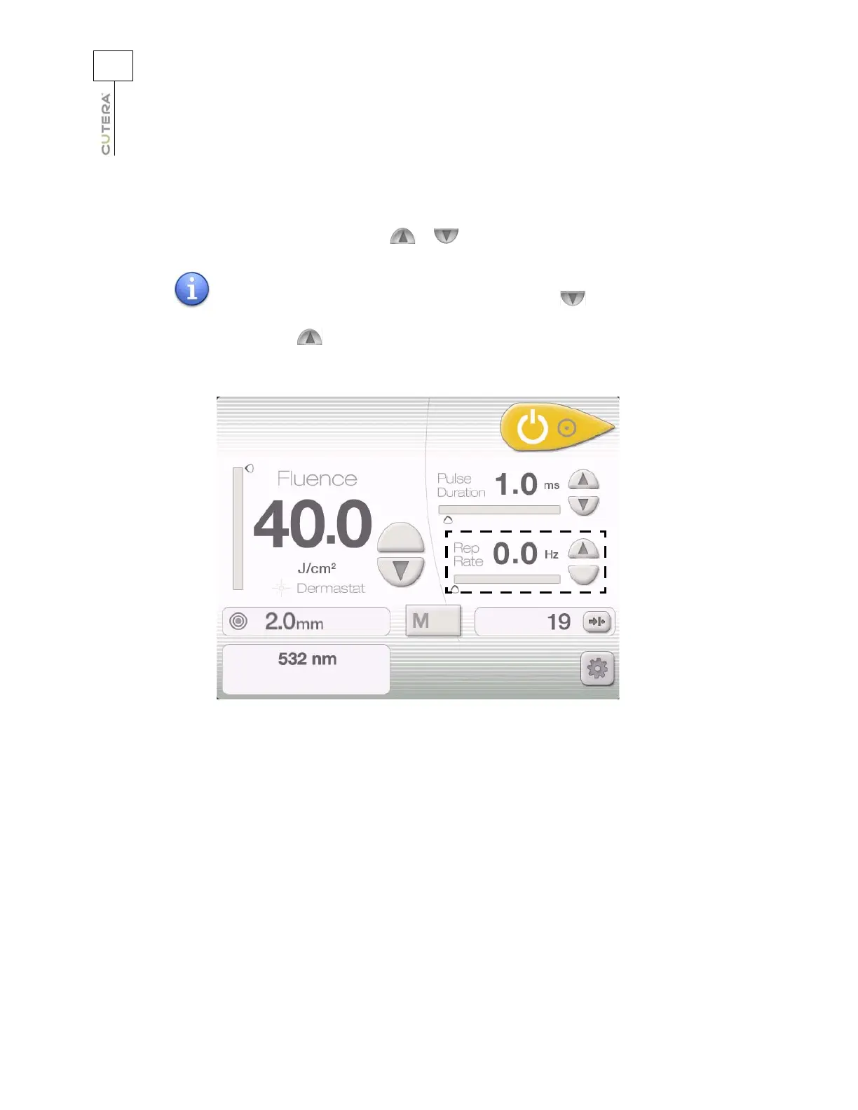 the desired repetition rate by pressing the or button next to the Rep Rate display.