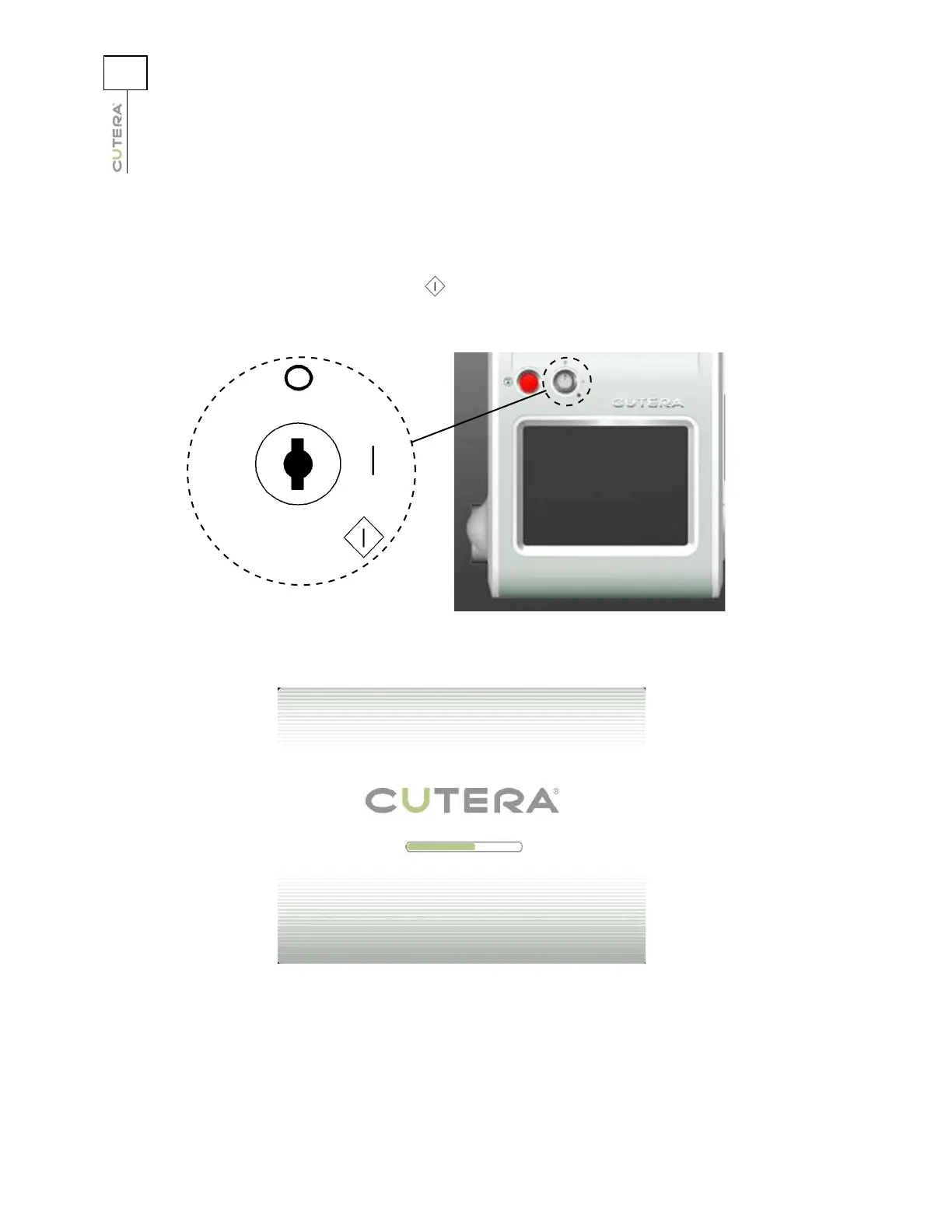 The touchscreen displays the start-up screen, and the system begins a self-test routine.