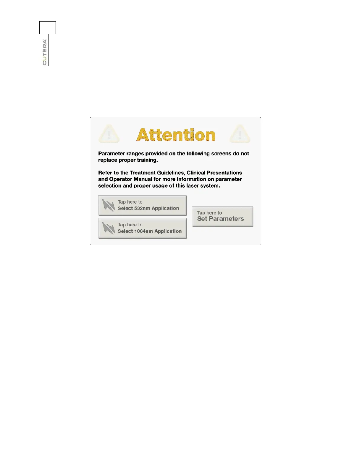 1064nm Application” button. Otherwise, press the “Tap here to Set Parameters” button to operate in