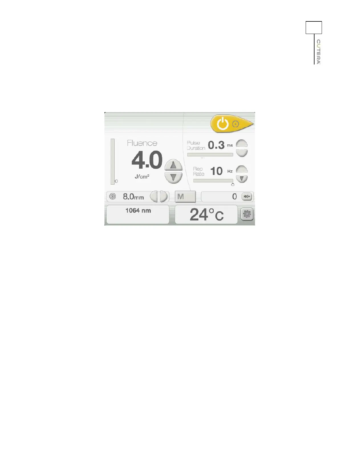 • select the fluence and repetition rate (refer to the User-selectable Parameters topic)