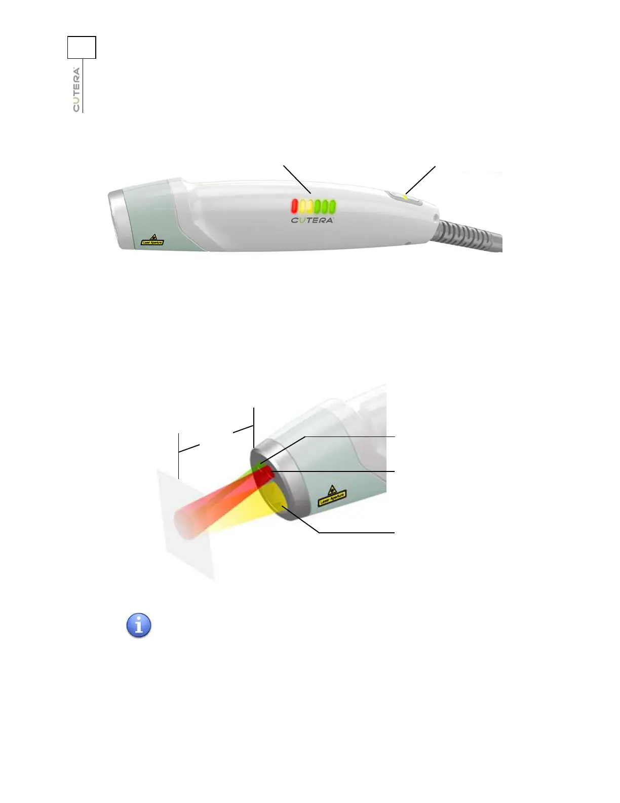 • A working distance beam facilitates proper positioning of the handpiece. When the working