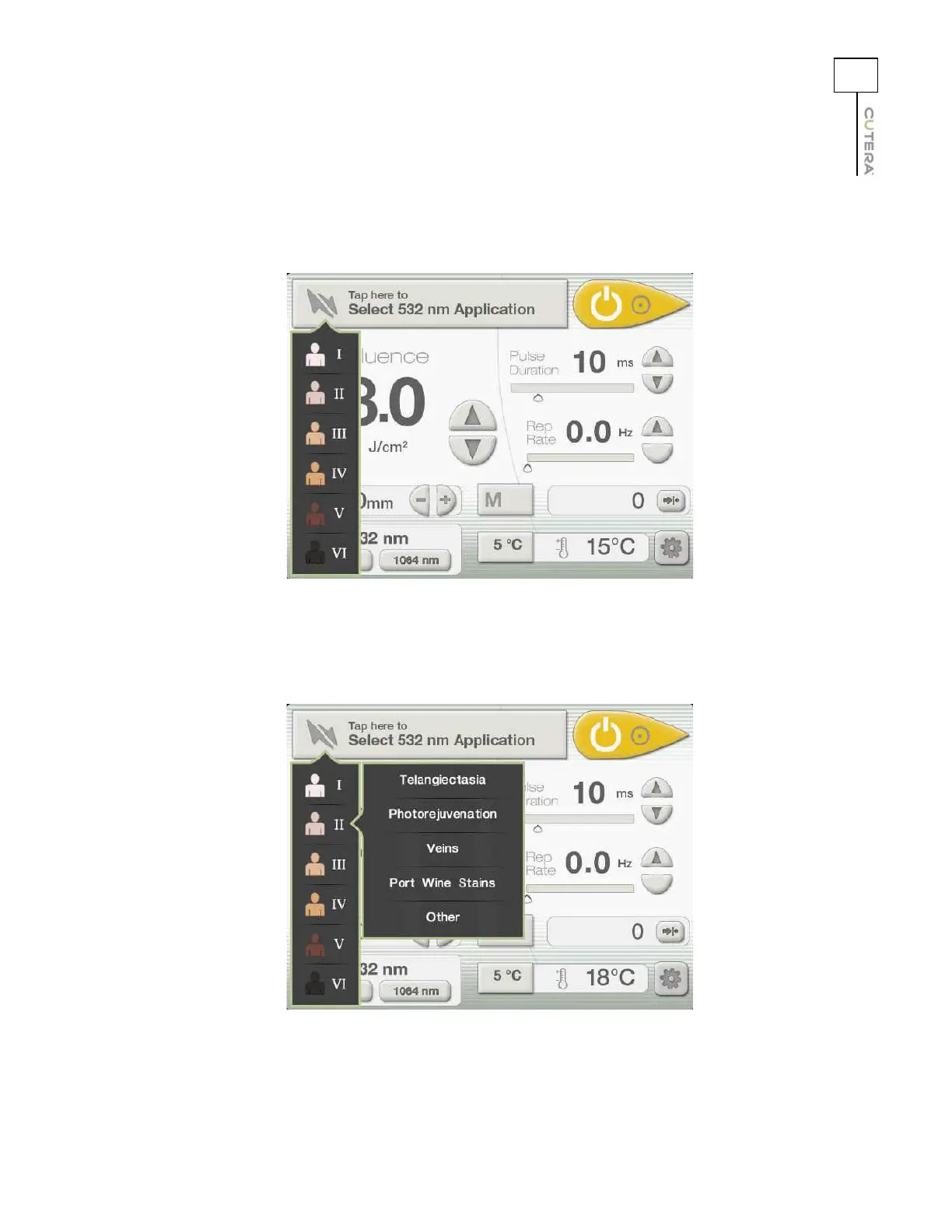 Press the button that corresponds to the patient’s skin type. The Treatment Category menu displays: