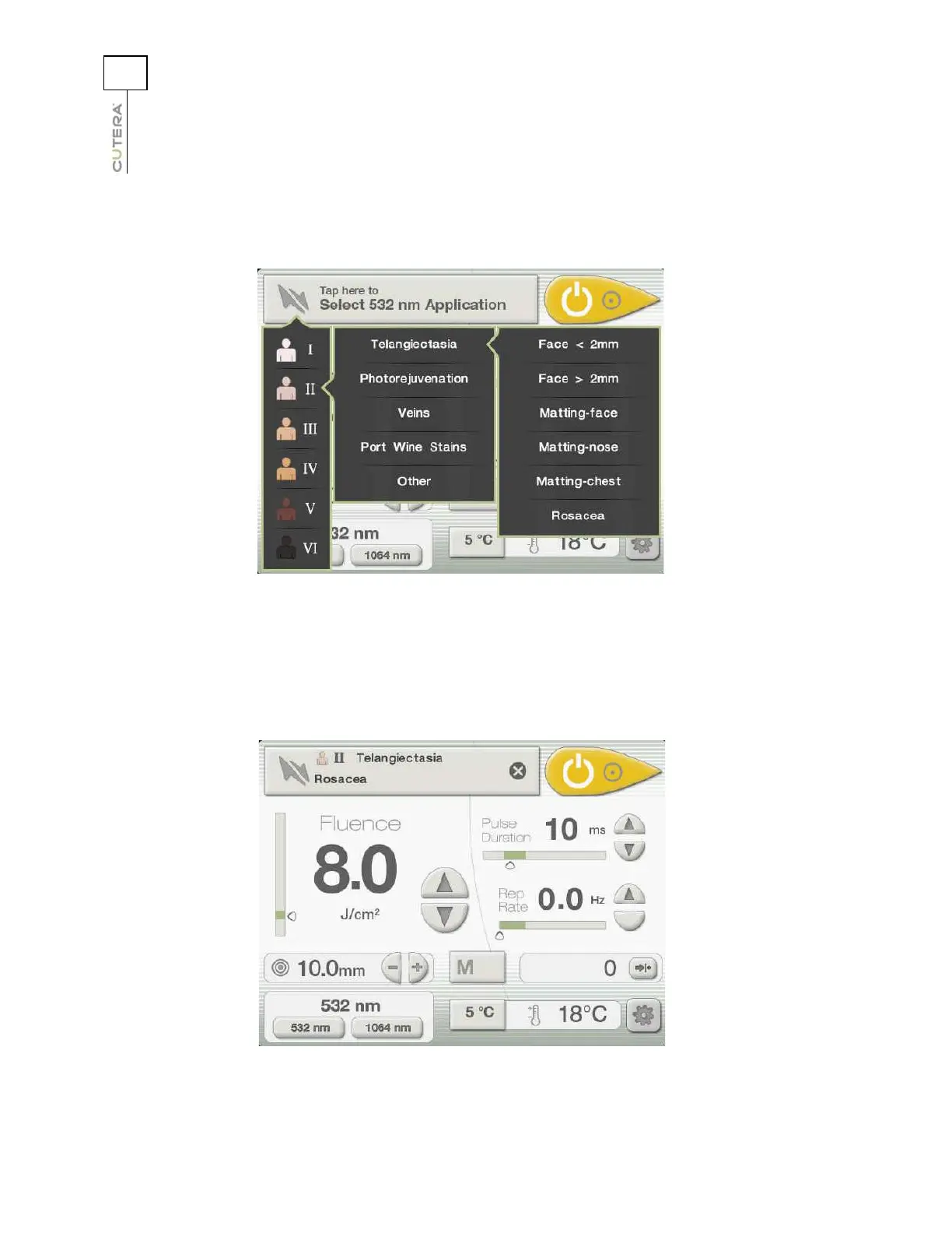 Press the button that corresponds to the desired treatment subcategory. The CoolView Treatment