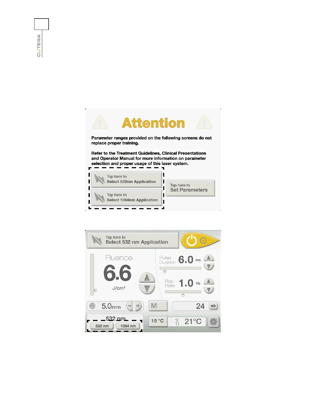 1064nm Application” button. To select the wavelength from the CoolView Treatment Screen, press the