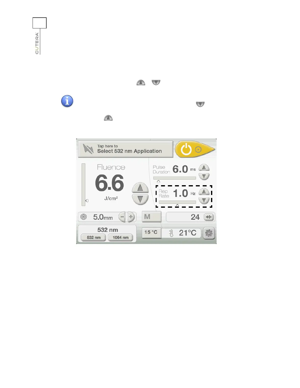the desired repetition rate by pressing the or button next to the Rep Rate display.