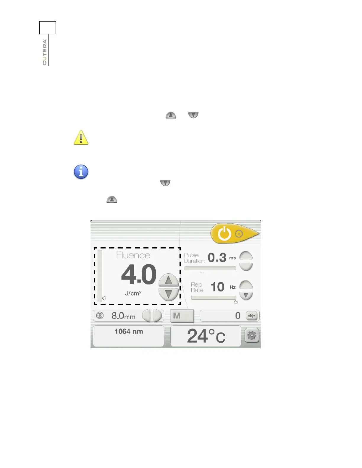 Select the desired fluence by pressing the and buttons next to the Fluence display.