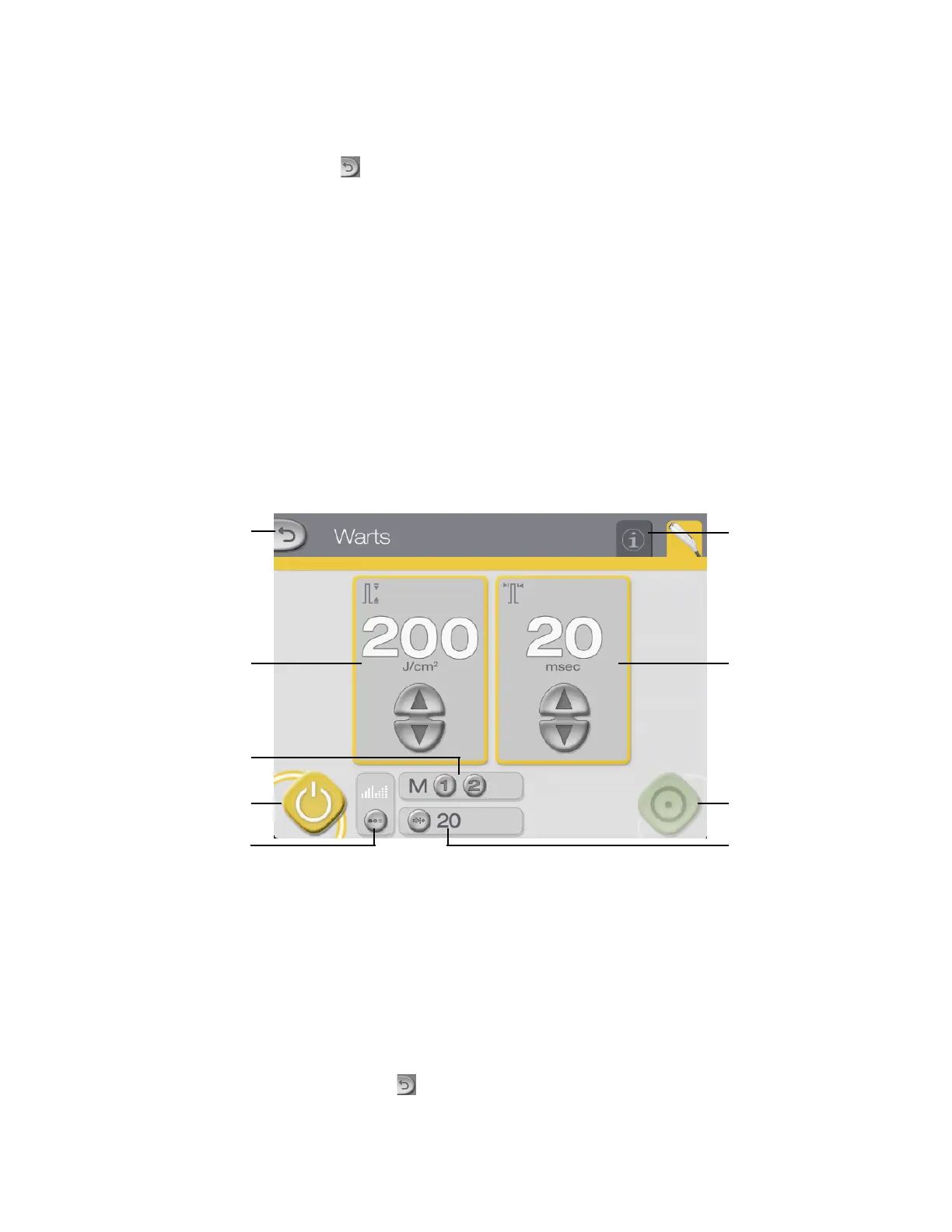 Press the (back) button on the Genesis Control Screen to access the Warts Control Screen.