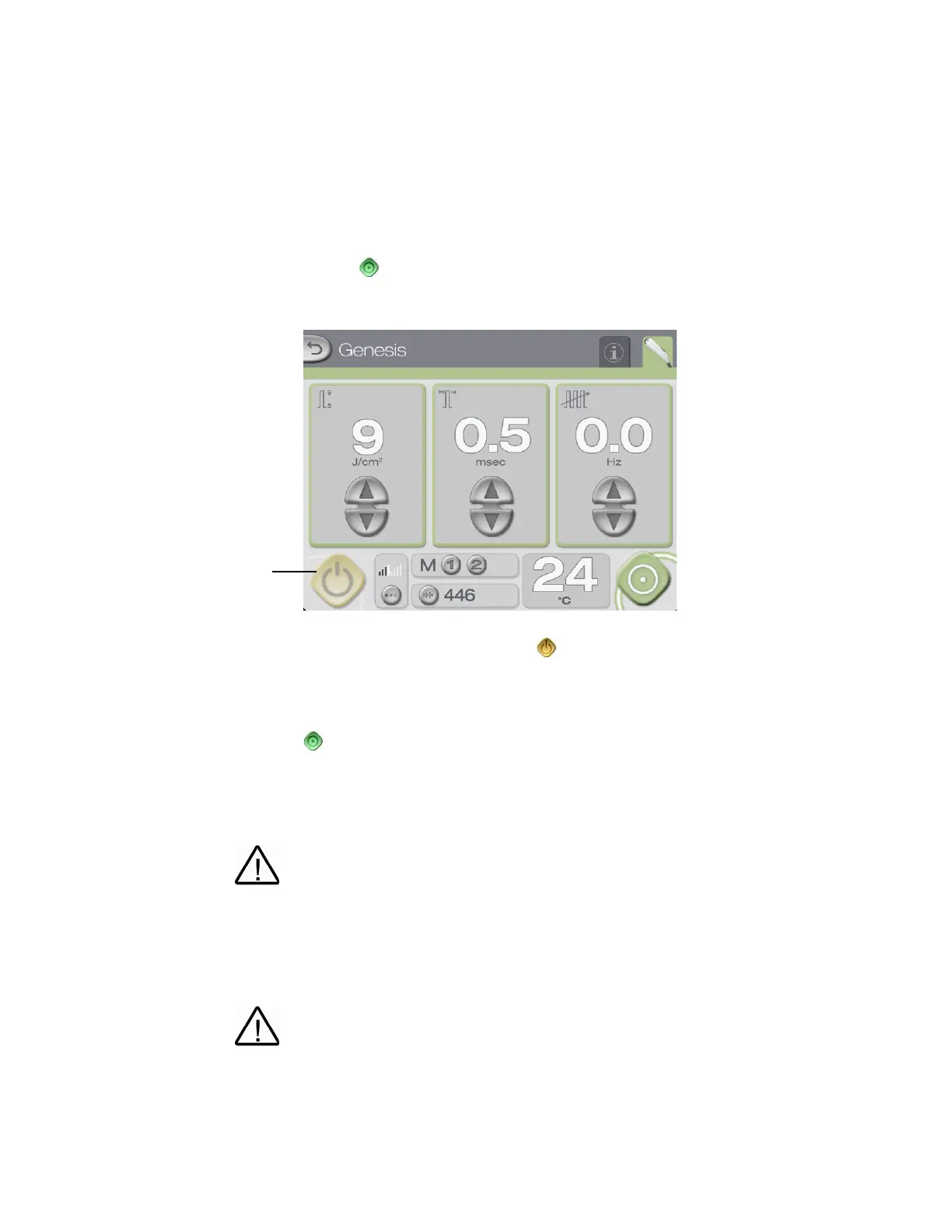 • the (ready) button and the borders around the treatment parameter displays are