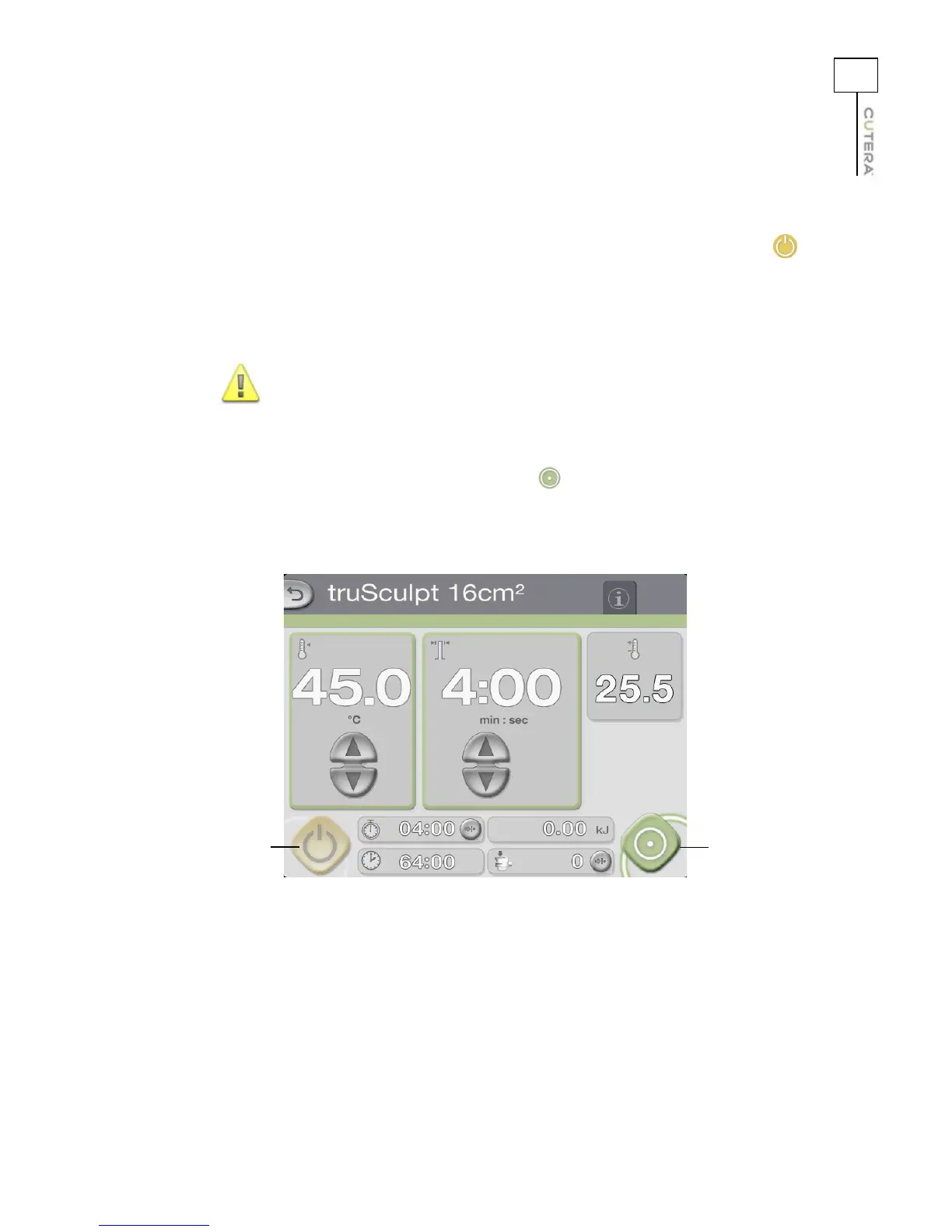 Except during actual treatment, place the system in STANDBY mode by touching the yellow