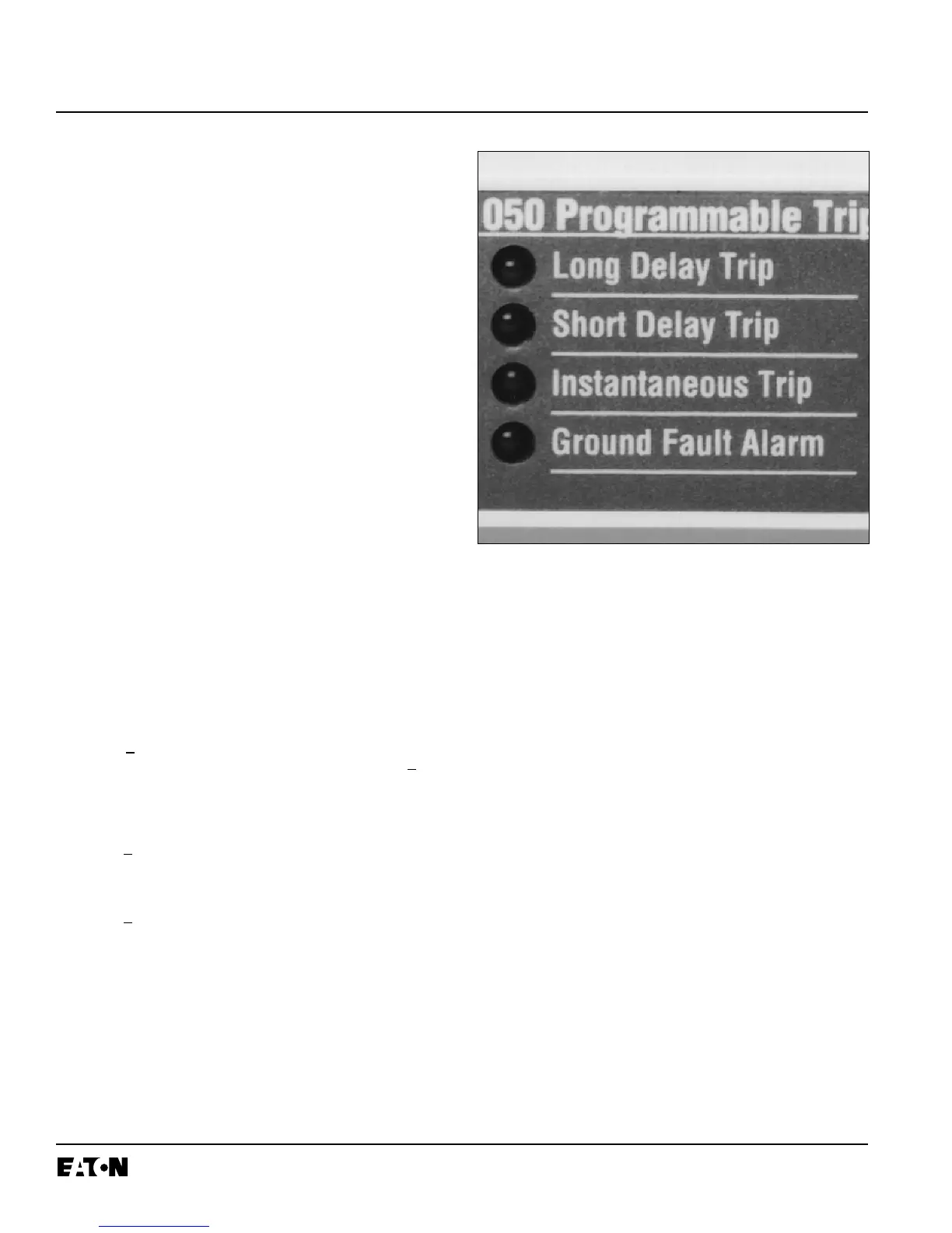 Alarm LED on the front of the trip unit will indicate the