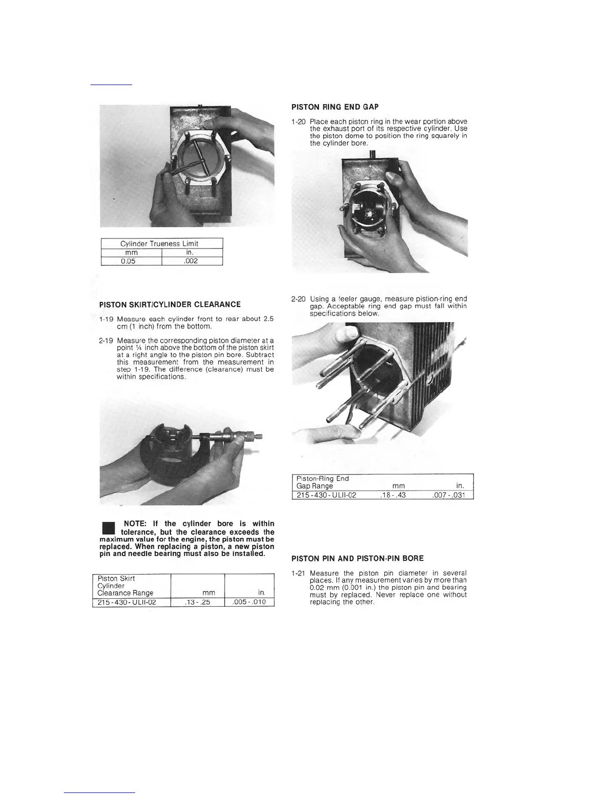 Cuyuna 215 - Piston Skirt;Cylinder Clearance; Piston Ring End Gap; Piston Pin and Piston-Pin Bore