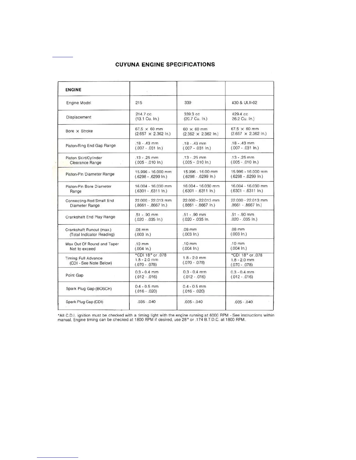 Cuyuna 215 - Engine Specifications