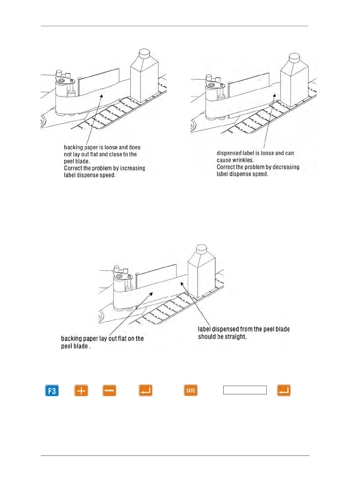close to the peel blade, and the label should be slightly tensed by the advancing bottle.