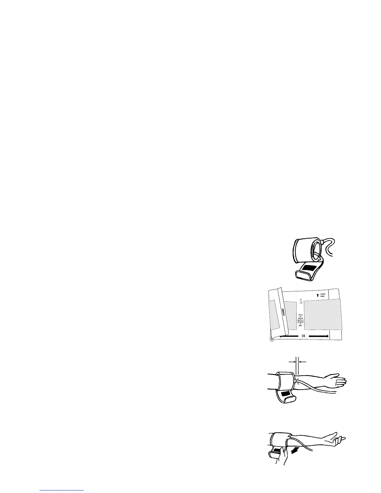 c) Lay the cuff on the arm as illustrated. Make certain