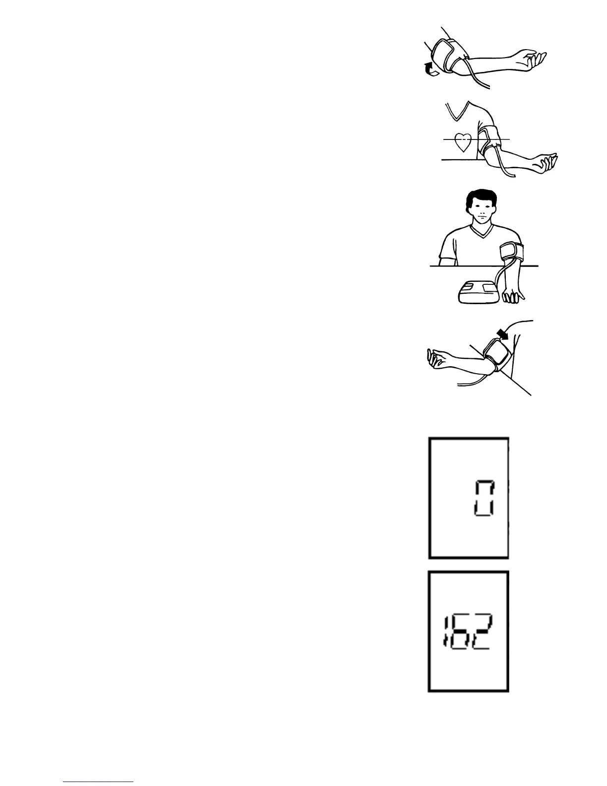 f) Lay your arm on a table (palm upward) so the cuff is at