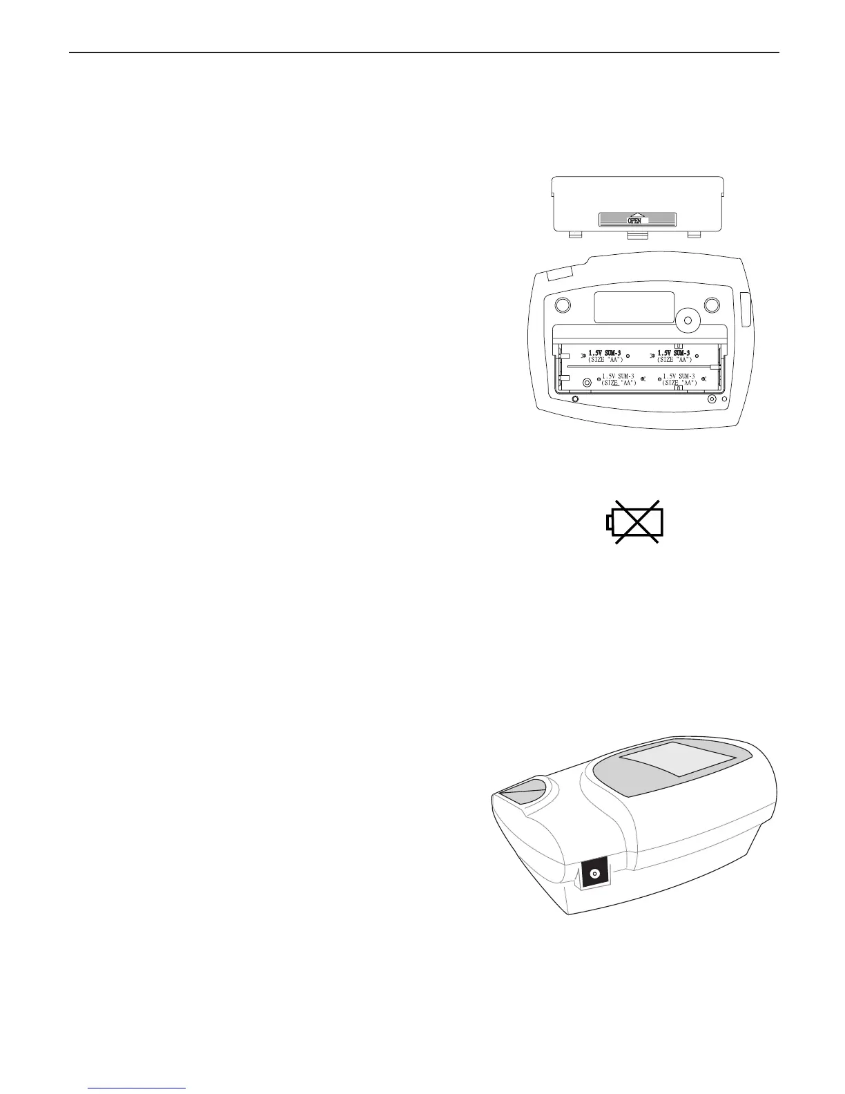 b) Insert the batteries (4 x size AA 1,5 V), following the