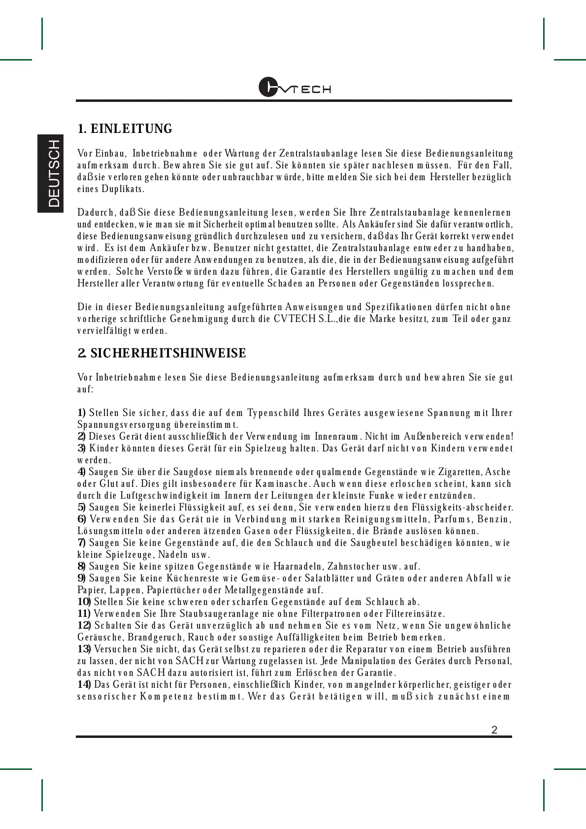 vorherige schriftliche Genehmigung durch die CVTECH S.L.,die die Marke besitzt, zum Teil oder ganz