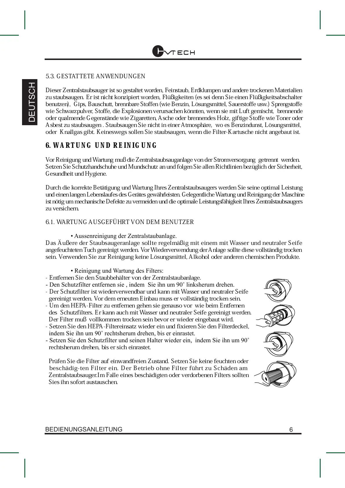 Zentralstaubsauger.Im Falle eines beschädigten oder verdorbenen Filters sollten