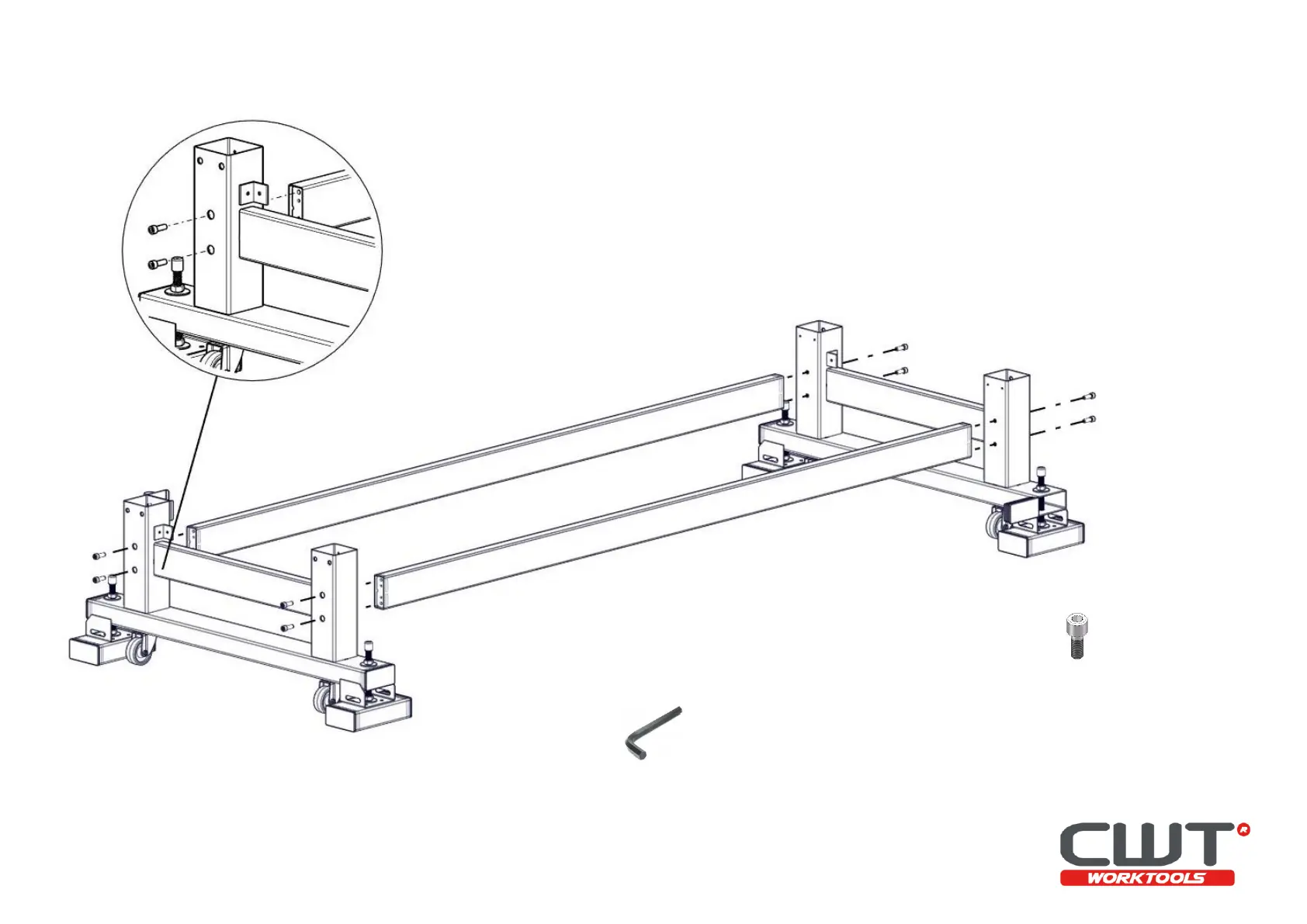 Mount the 100x40 Girder to the legs using M10x30, 4x2 pcs