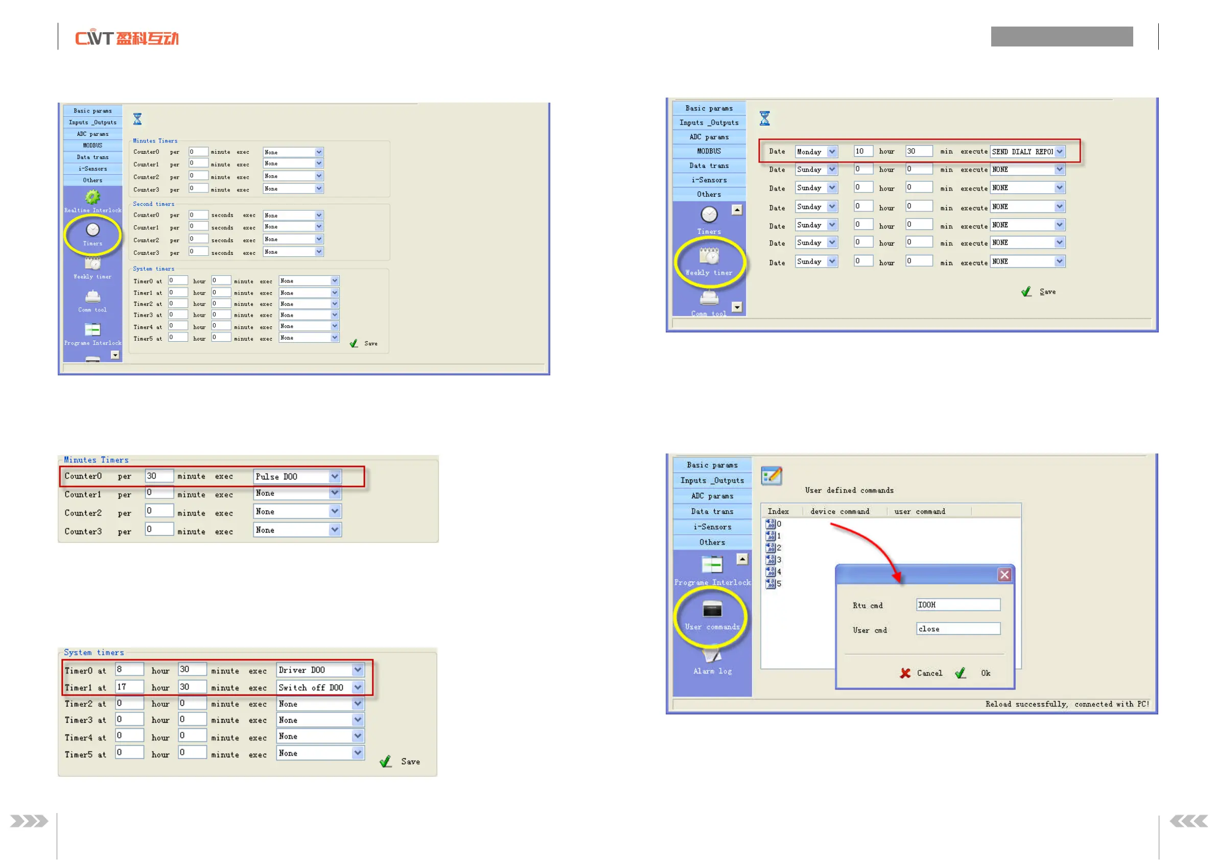 or example, at 8:30 execute output 0 on, at 17:00 execute output 0 off.