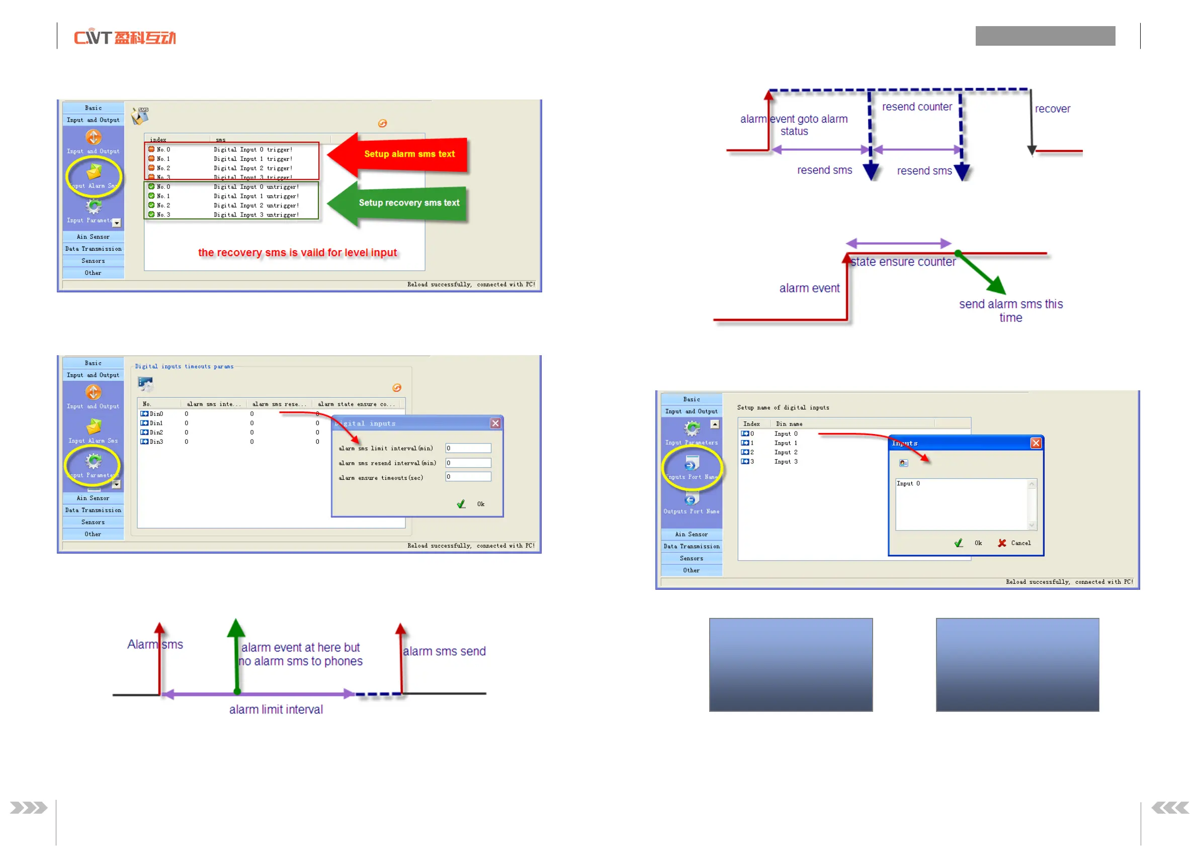 Define alarm and recover sms of digital input