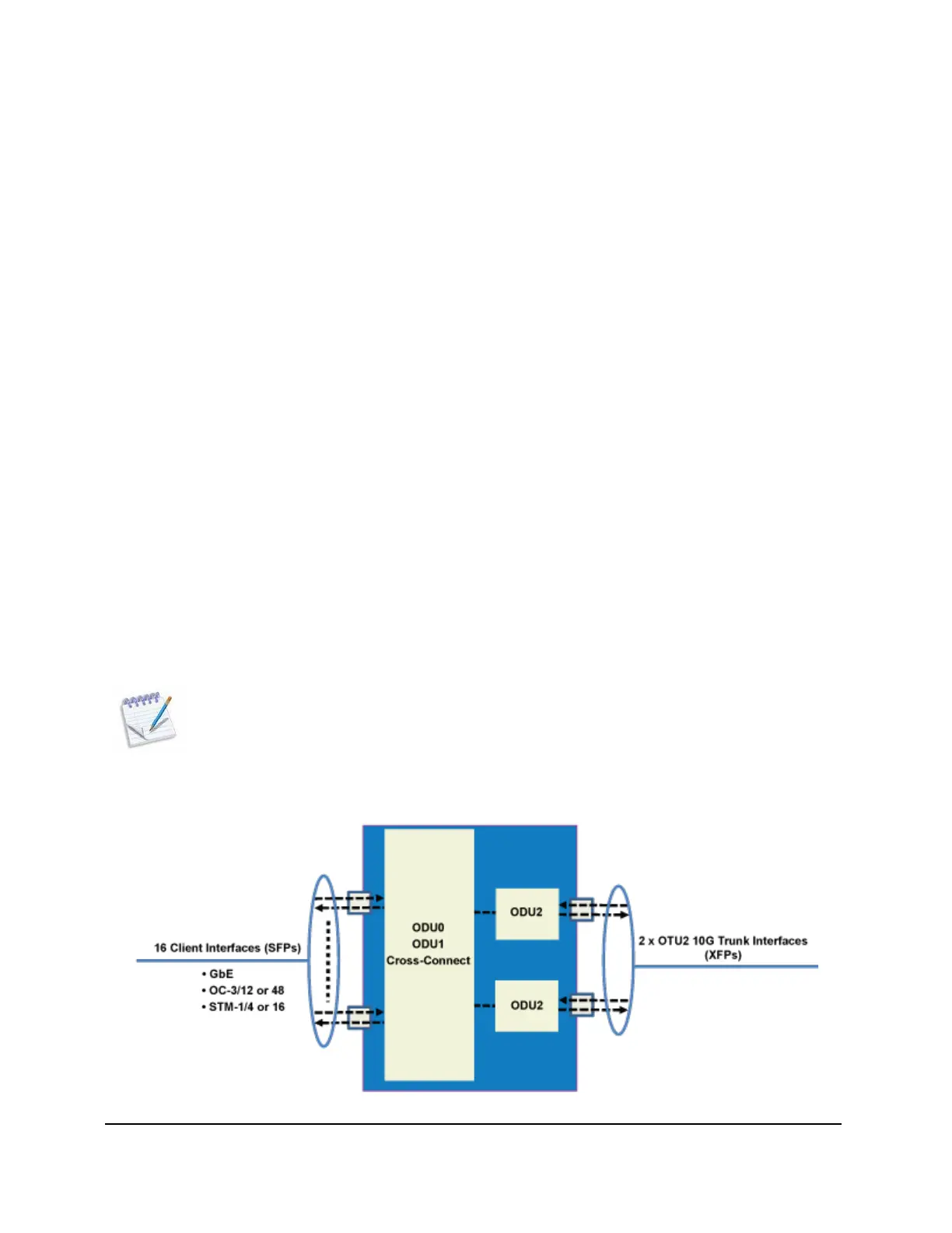 module. The cross-connect function is performed at the ODU0 and ODU1 levels. Trunk port to trunk port