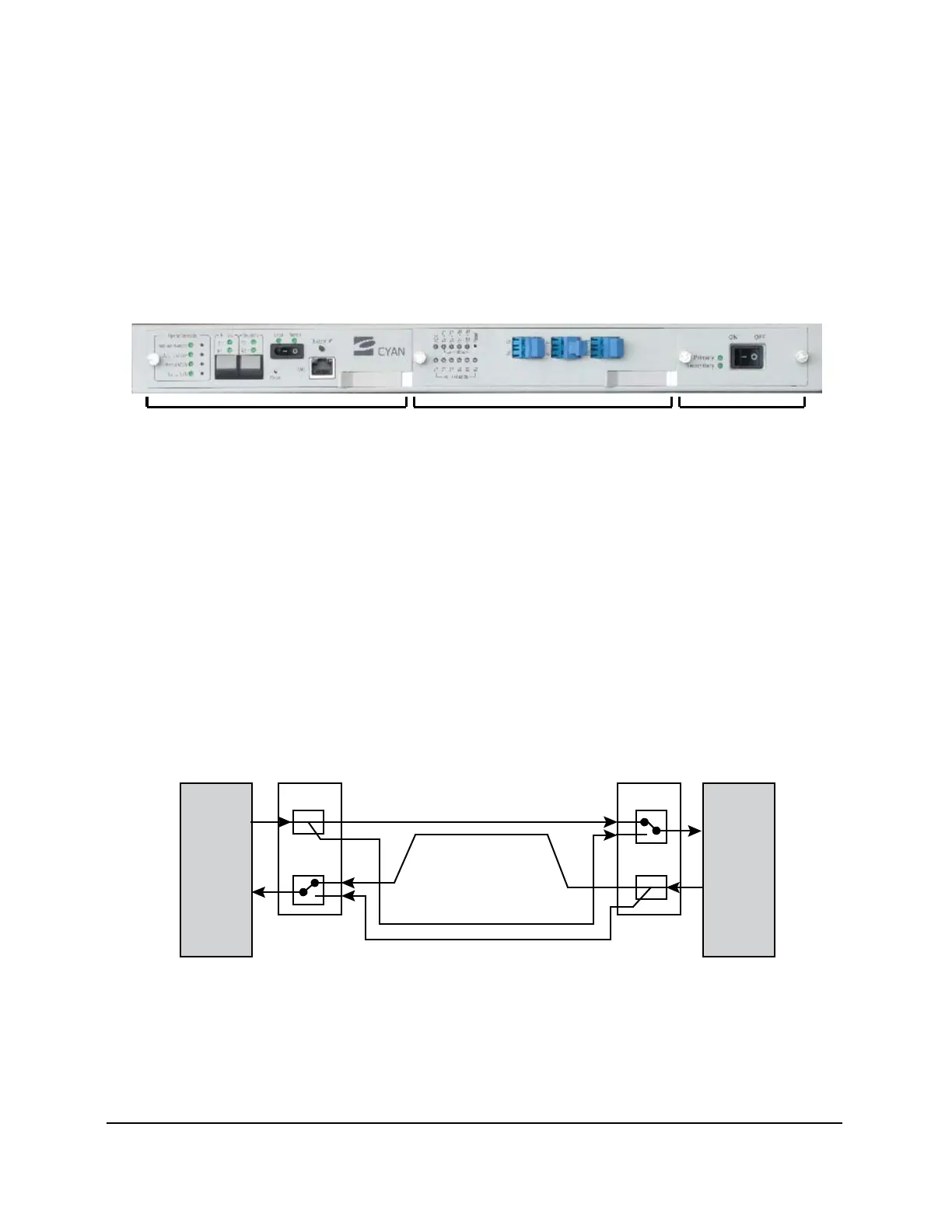 The OPS provides 1+1 protection. It continuously monitors optical power on both its primary and secondary