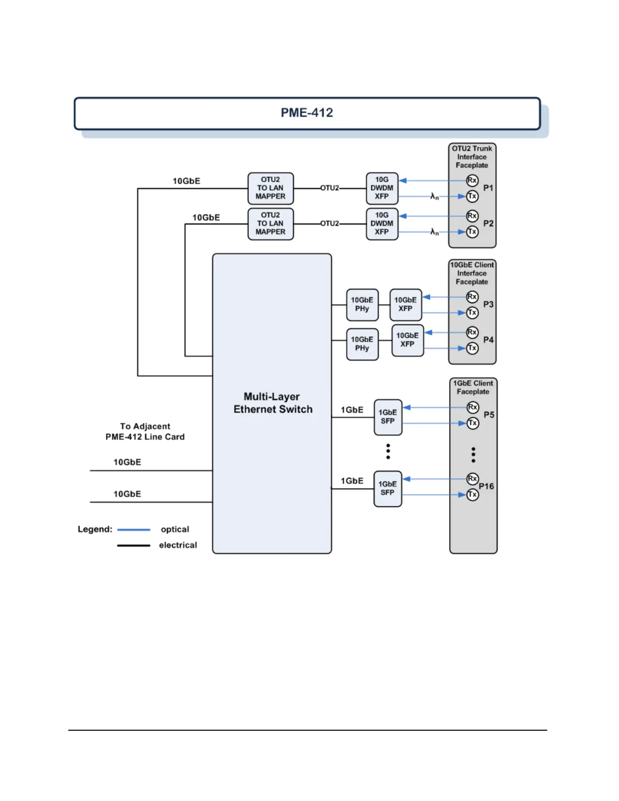 The PME-412 module provides an optional in-band management channel of up to 100 Mbps in bandwidth.